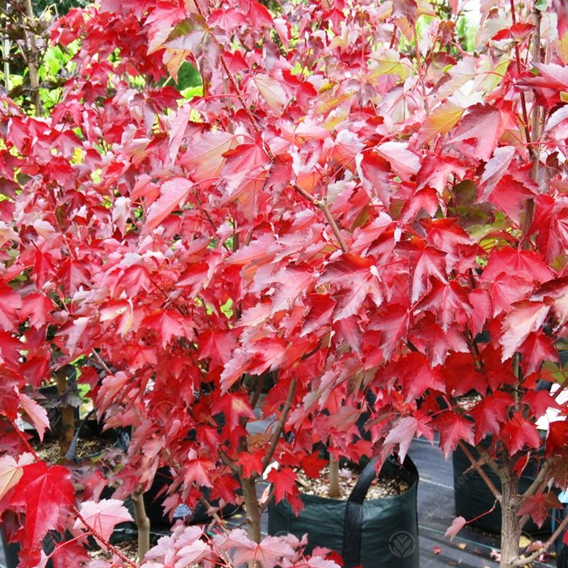 The Acer rubrum ‘Fairview Flame’ Tree more commonly known as the Red Maple Tree is a large deciduous tree. This variety has dark green five-lobed leaves that mature to a deep red in the Autumn. Small red flowers accommodate the branches in the Spring.