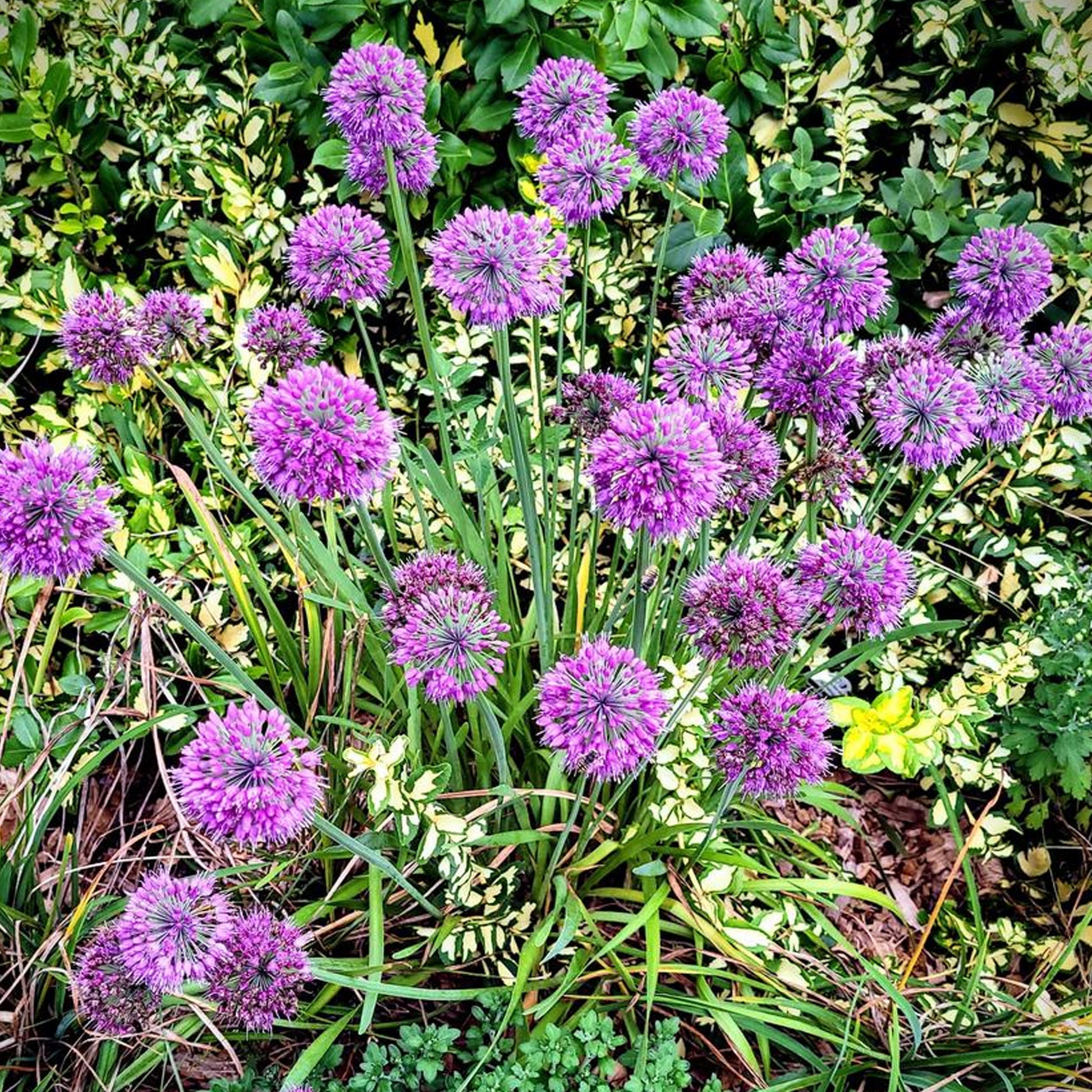Plant alliums alongside other leafy plants that can hide the faded allium foliage after flowering.
