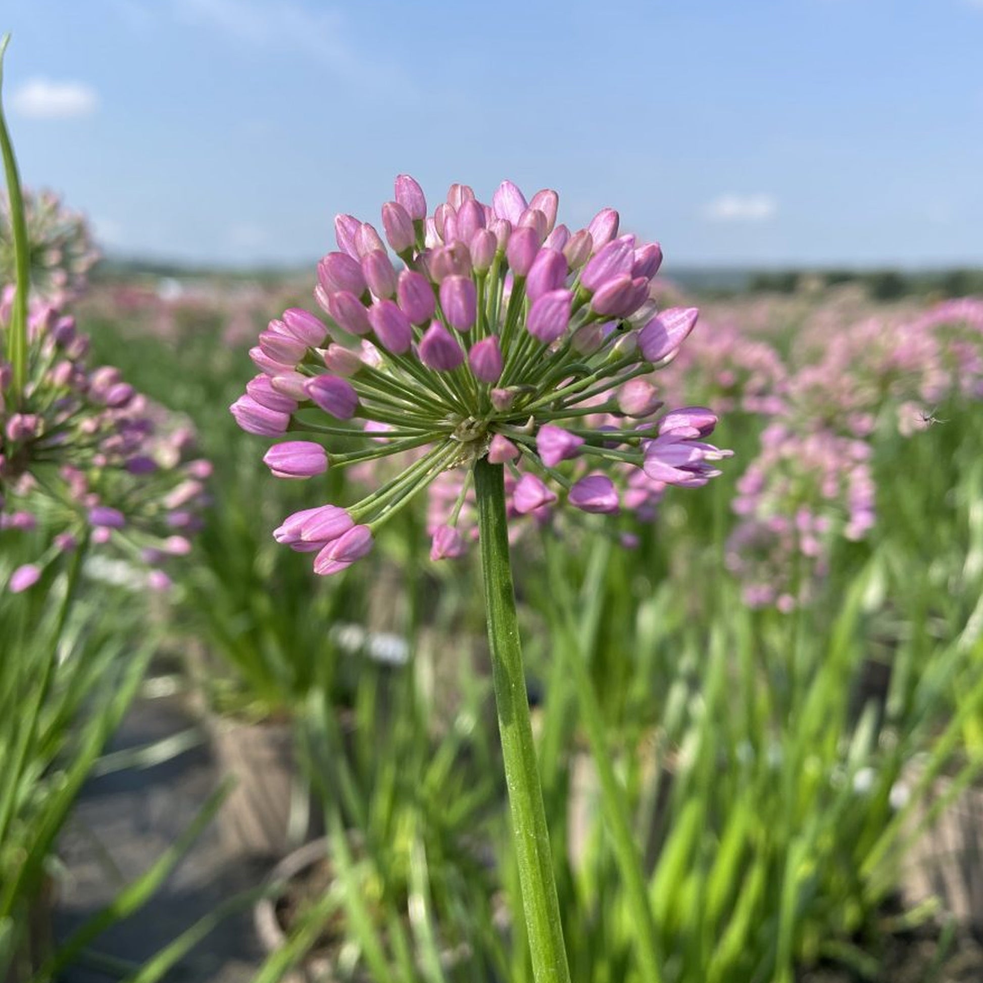 Allium 'Lavender Bubbles' is a striking ornamental onion that produces eye-catching lavender-purple blooms in early summer. The flowers form dense, rounded heads that rise on tall, upright stems, making them a perfect addition to borders, beds, and containers. This perennial not only brings vibrant colour but also attracts pollinators, enhancing the biodiversity of any garden. Its strong architectural form makes it ideal for both modern and traditional garden designs.