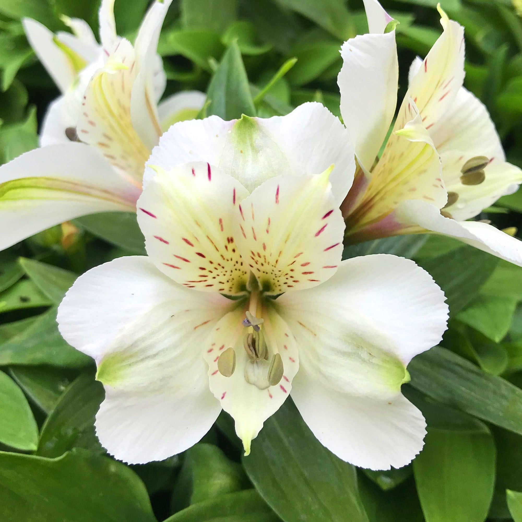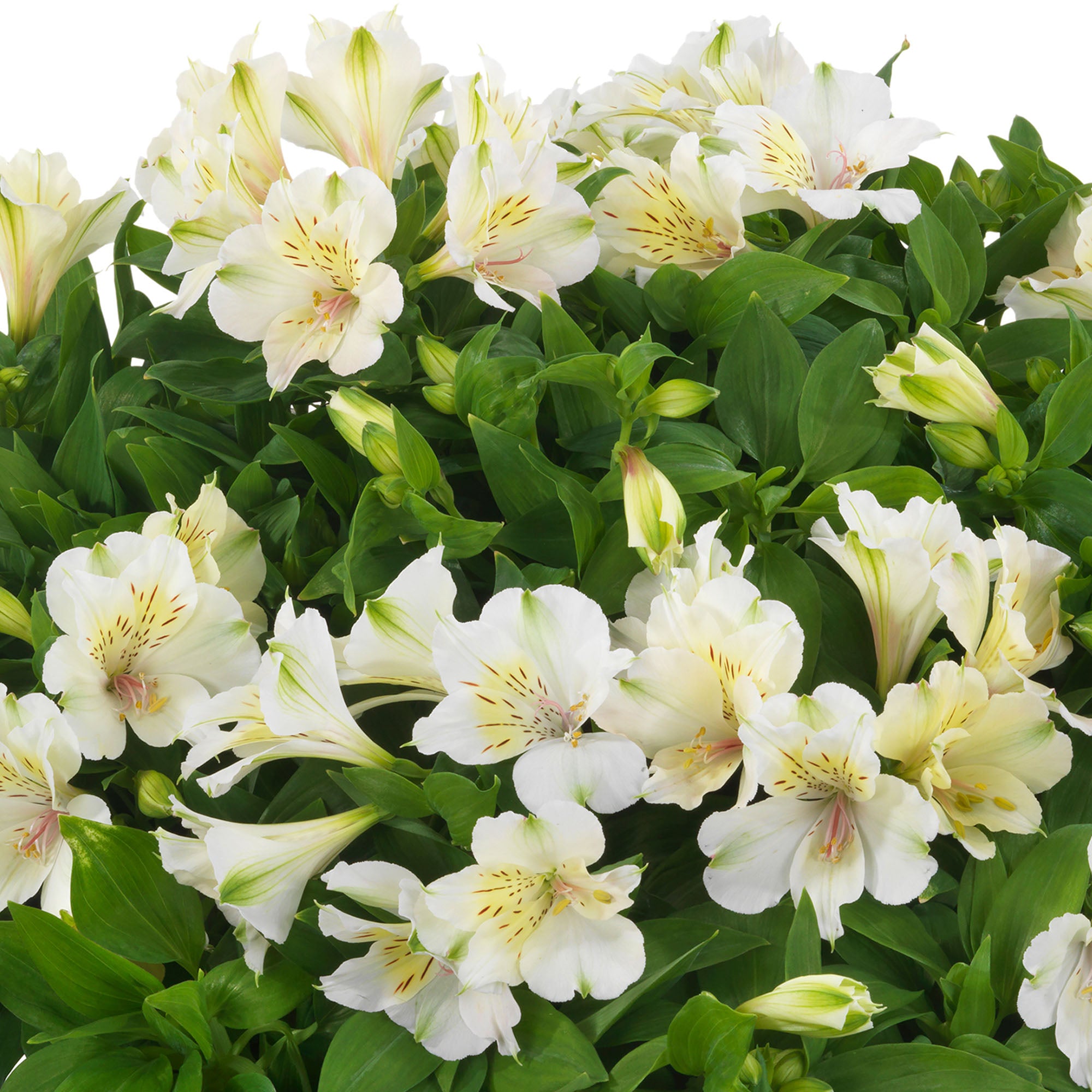 Beach Valley is a captivating Alstroemeria cultivar with lush green foliage and masses of long-lasting pink-blushed, creamy-white summer blooms. These eye-catching flowers are accented with yellow and are irresistible to bees, butterflies, and other pollinators, turning your garden into a buzzing hive of activity.