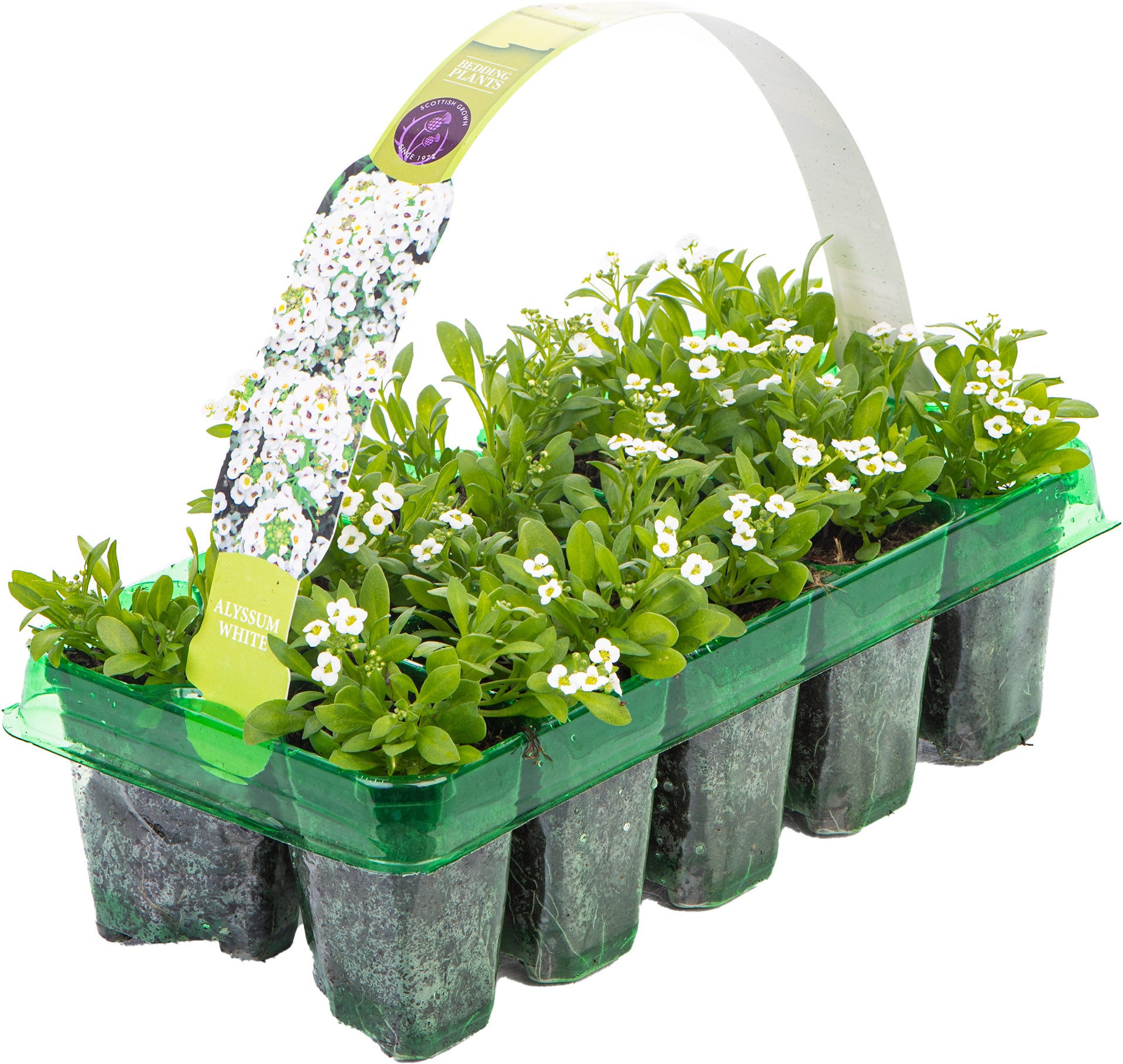 This ten pack of Alyssum Clear Crystal White bedding plants will bring a gorgeous array of large, white flowers into the garden to create stunning displays within flower beds. They possess an elegance about their look, with each scented flower coming together in a clustered manner, contrasting extremely well against the lush, green foliage that is present below. These can be planted in Spring, but tend to fade in warmer periods, therefore seeing them bloom once more in Autumn and Winter. They can be planted straight from the tray upon arrival, flourishing with ease when given the correct care.