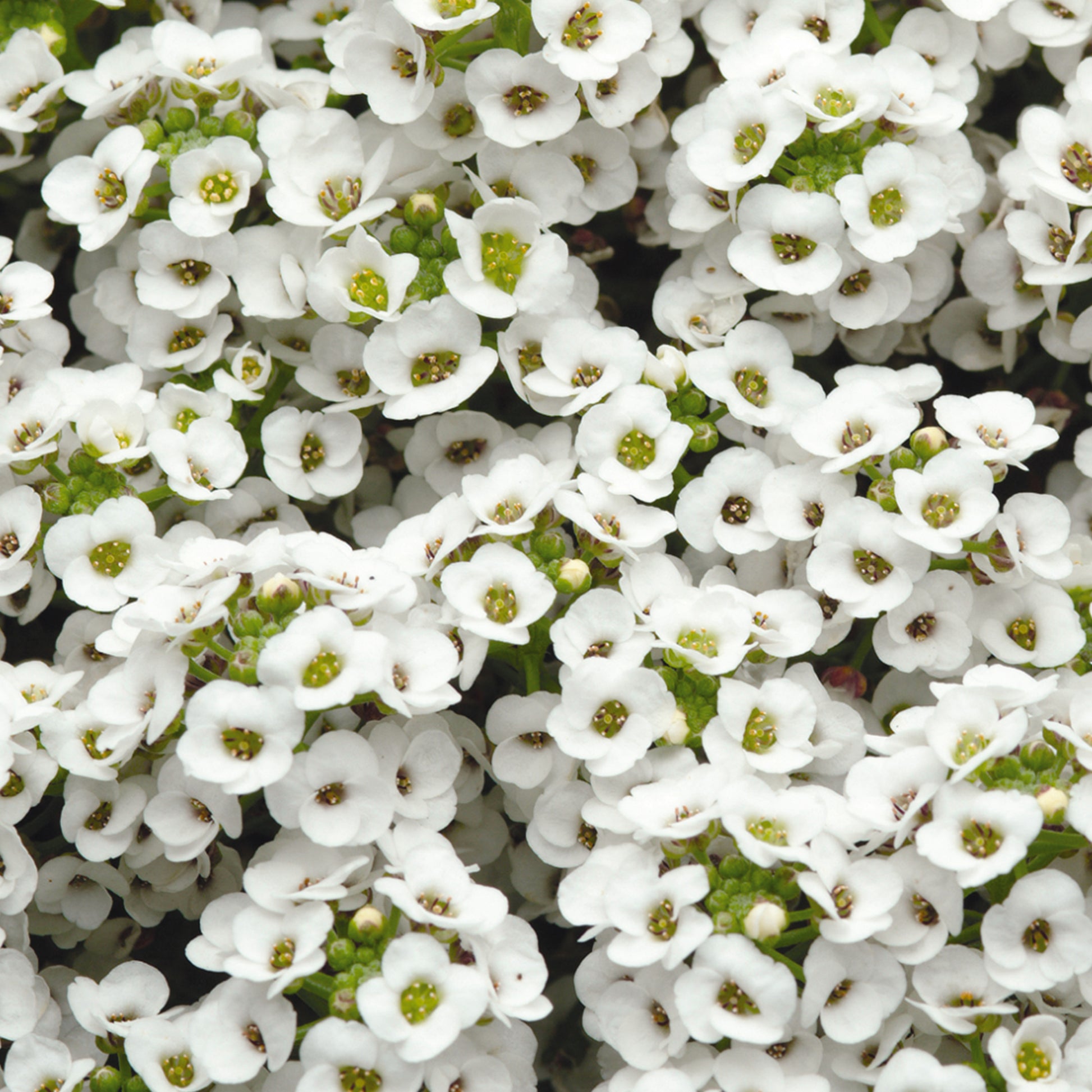 Plant Alyssum in well-drained soil in a sunny or lightly shaded location. Ideal for bedding schemes, edging, or filling gaps between paving, these low-growing plants form neat mounds covered in clusters of tiny, fragrant flowers. Space them around 15cm apart for a dense, carpet-like display.