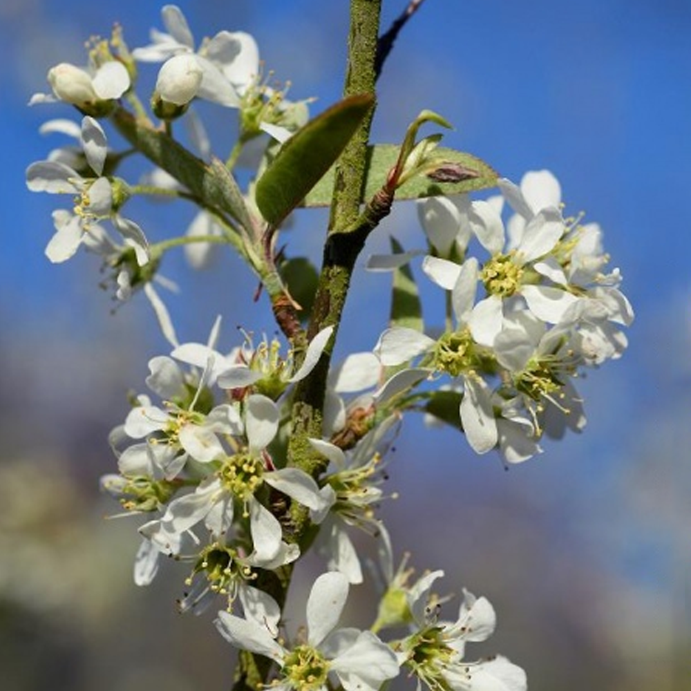 To plant an Amelanchier tree, choose a sunny or partially shaded spot with moist, well-draining, acidic to neutral soil. Dig a hole twice as wide as the root ball and slightly shallower than its height to ensure the roots are just below the surface. Loosen the soil at the base, soak the root ball in water, and position the tree upright. Fill in the hole, firm the soil gently, and water thoroughly. Apply a layer of mulch around the base to retain moisture and suppress weeds, keeping it away from the trunk.