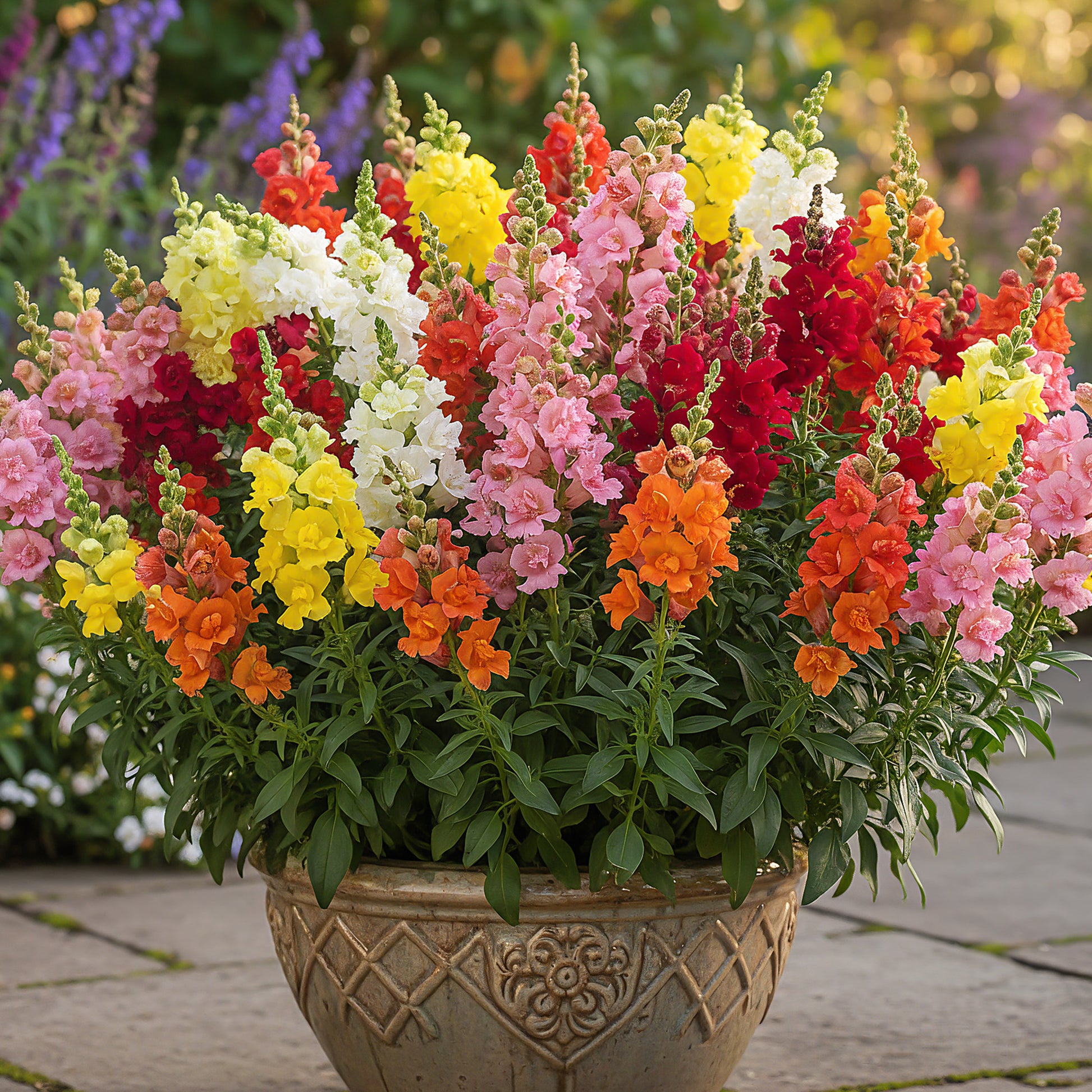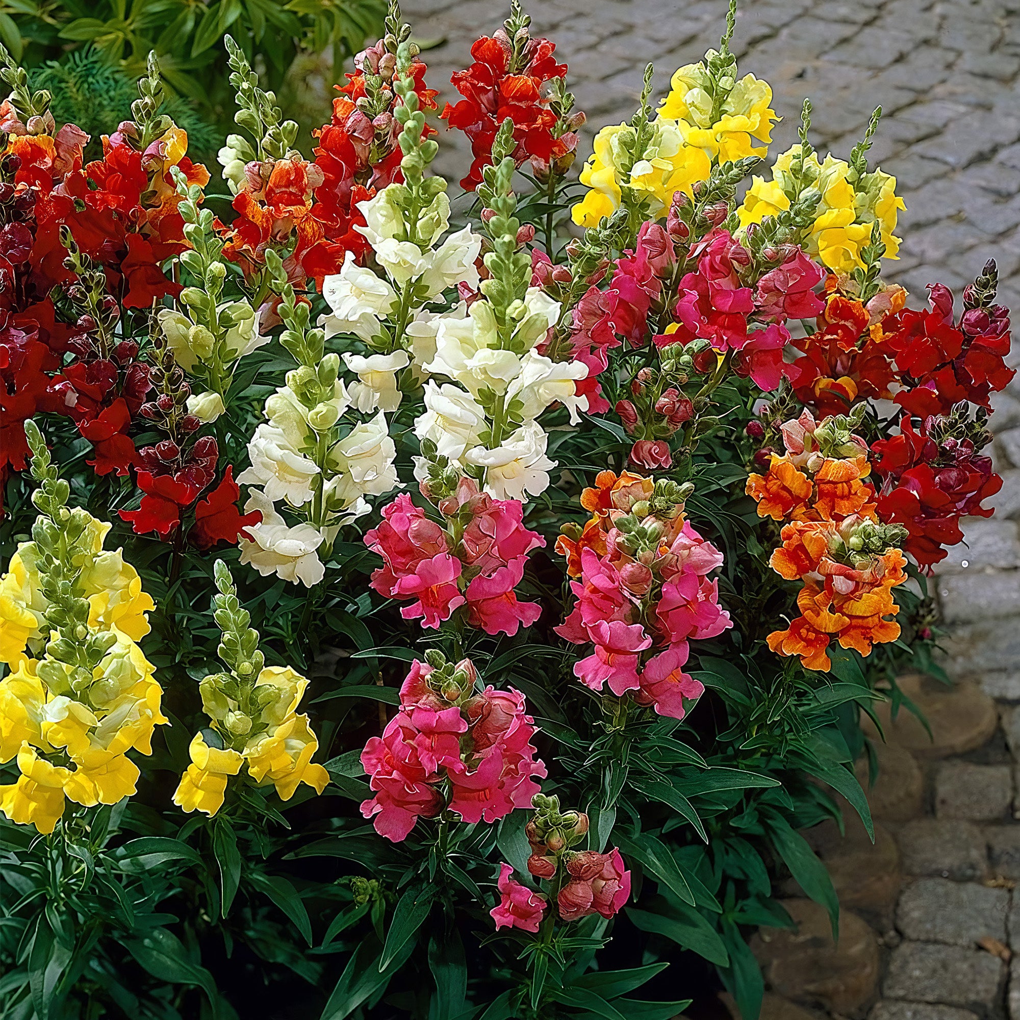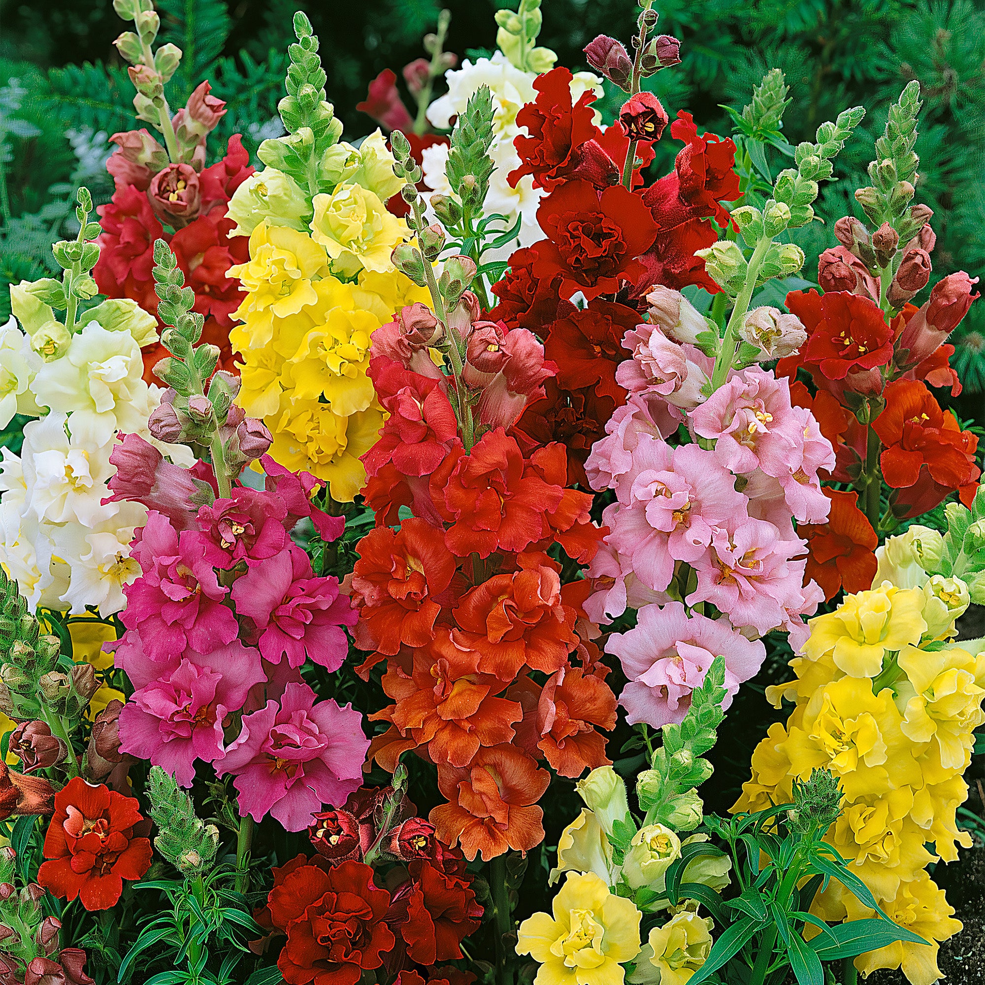 Add a touch of elegance and drama to your garden with these Antirrhinum 'Madame Butterfly Mixed' F1 seeds. This premium mix features double-flowered Snapdragons in a rich palette of pinks, reds, yellows, and whites. The ruffled blooms resemble miniature Azaleas and sit atop sturdy stems, making them ideal for cutting and perfect for adding height and texture to borders and beds.