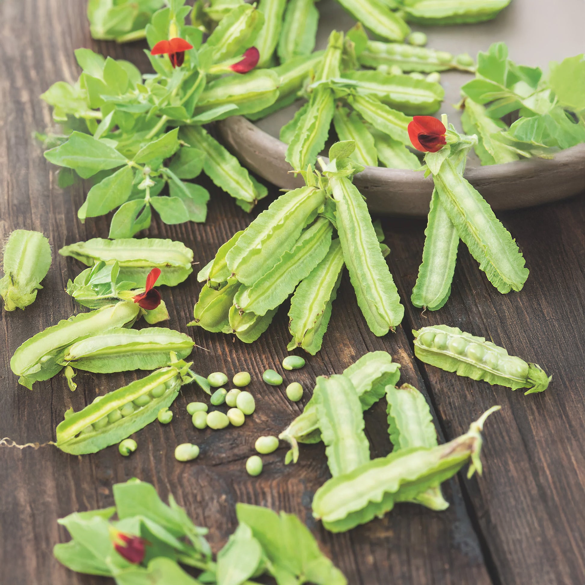 The Asparagus Pea is an eye-catching and productive plant that offers both visual appeal and culinary delight. This variety is prized for its unique pods, which have a delicate flavour reminiscent of asparagus, making them a favourite among gardeners looking to grow something a little different. The plant produces beautiful red flowers that add a touch of colour to vegetable gardens and attract pollinators, enhancing the overall garden environment.