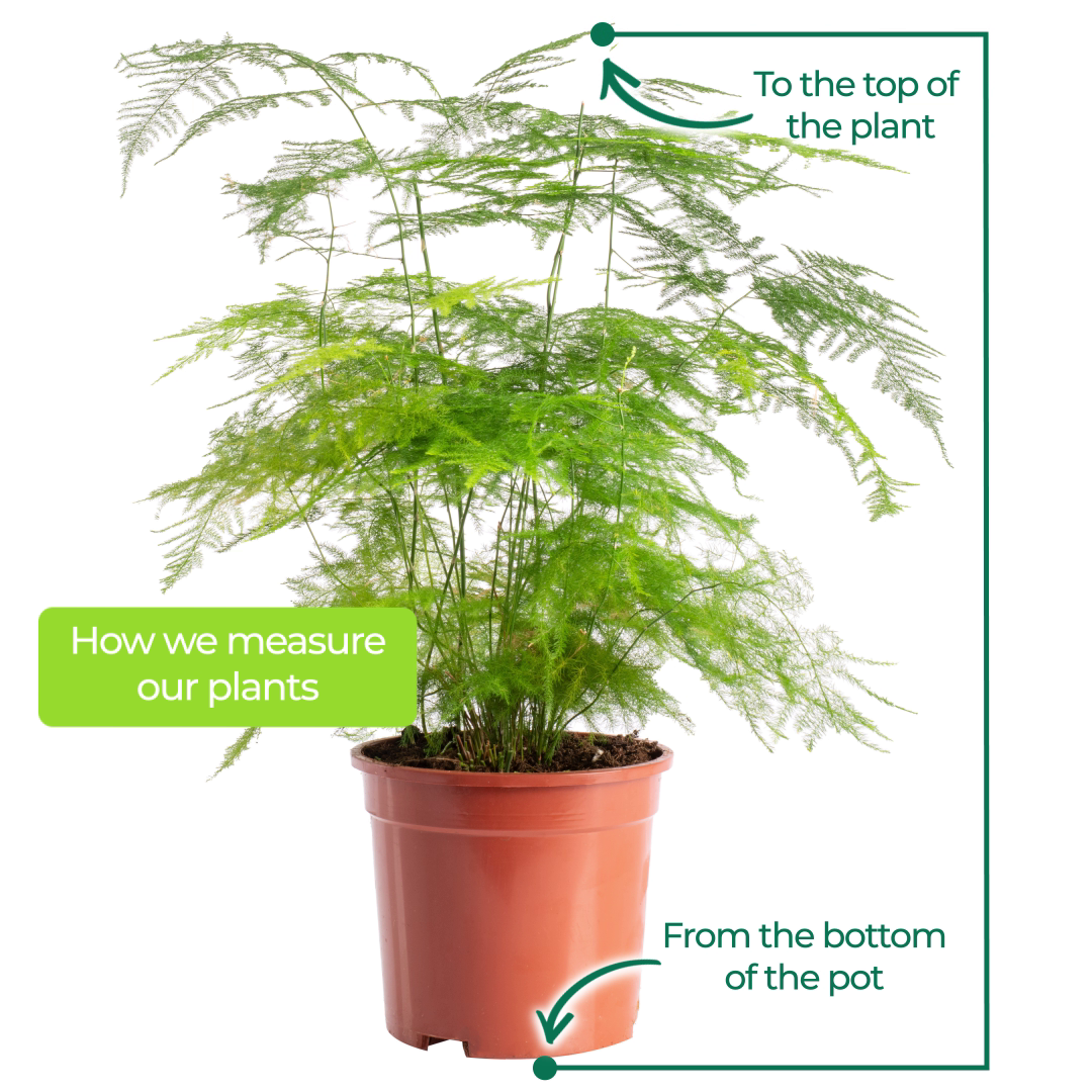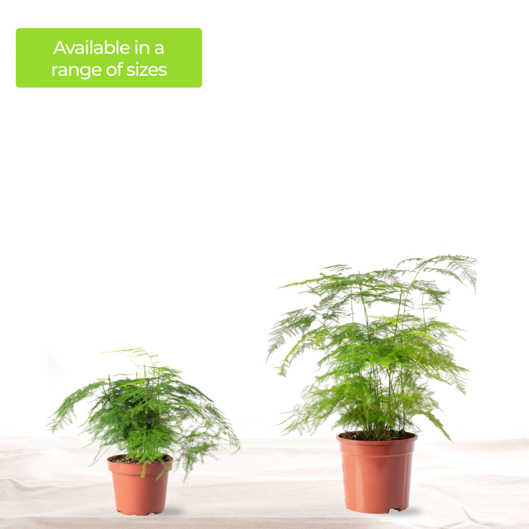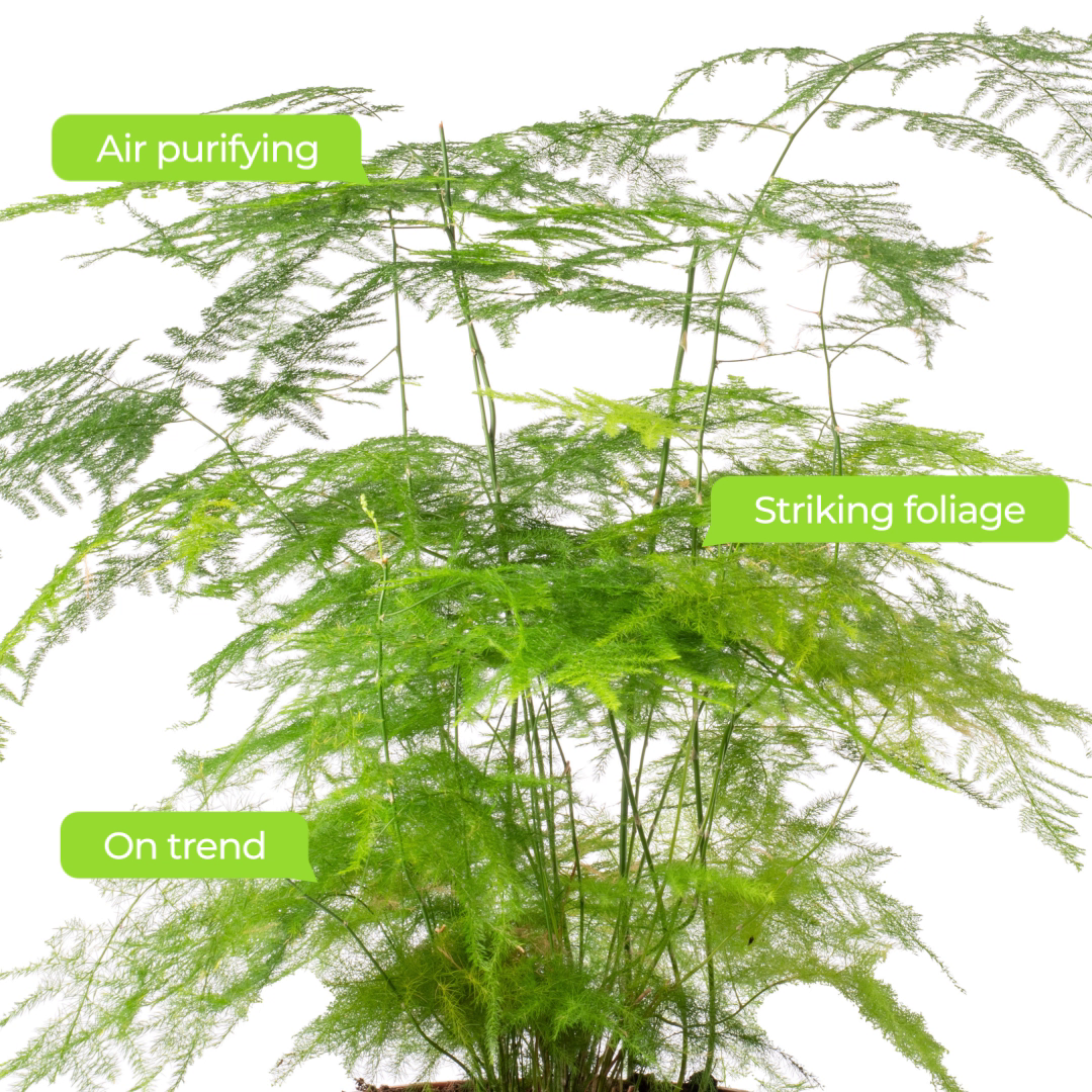 The Asparagus Plumosus's air-purifying capabilities make it an excellent choice for promoting a healthy and revitalising living environment. It effectively filters common indoor pollutants, enhancing the air quality and providing you with a fresh and invigorating atmosphere. Transform your living space with the Asparagus Plumosus - a delicate and graceful plant that embodies the perfect balance of form and function. Order now to experience the beauty, elegance, and air-purifying benefits of this remarkable indoor plant.