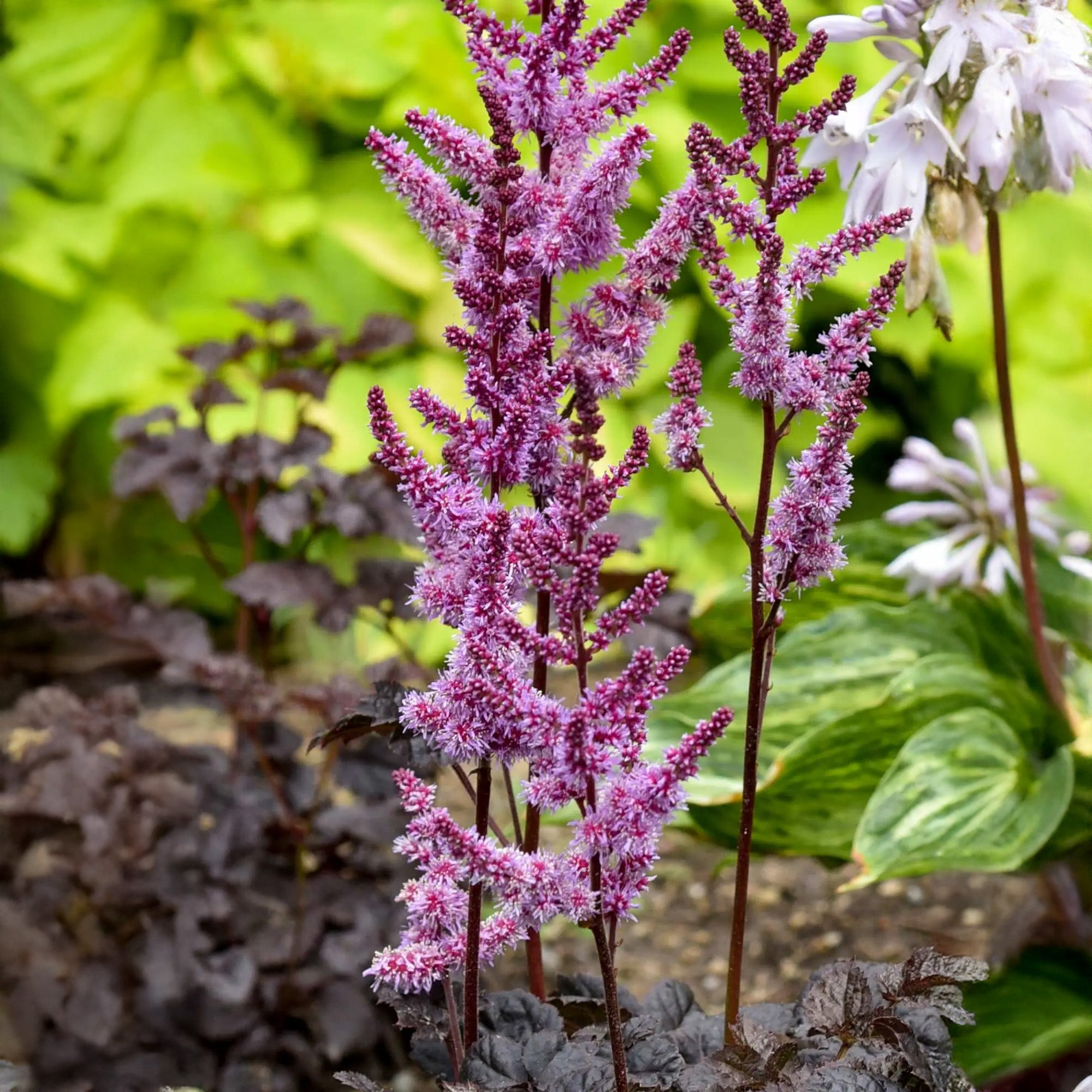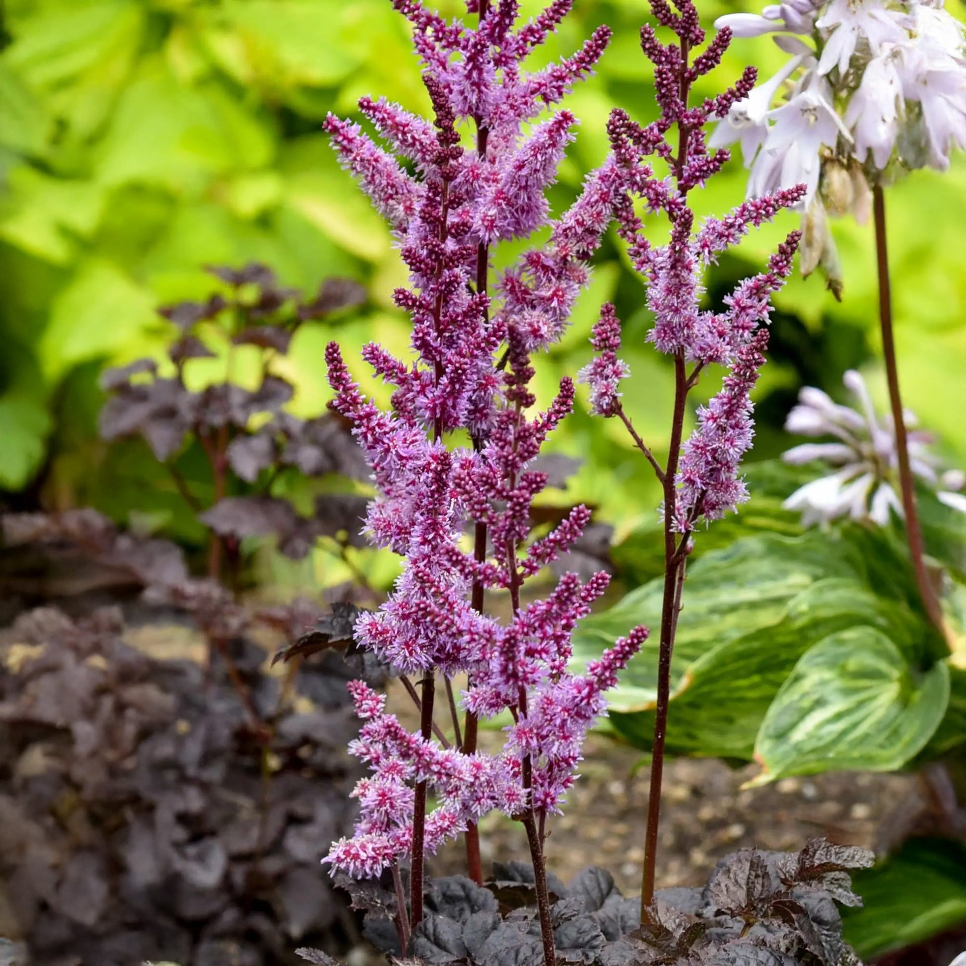 Thriving in partial shade and consistently moist, rich soil, Astilbe Dark Side of the Moon is an excellent choice for UK gardens. It performs well in garden borders, alongside ponds, or in woodland settings where its feathery plumes enhance the natural landscape. Blooming from June to August, this hardy perennial pairs well with other shade-loving plants such as ferns and hostas, adding layers of texture and colour to shaded areas.
