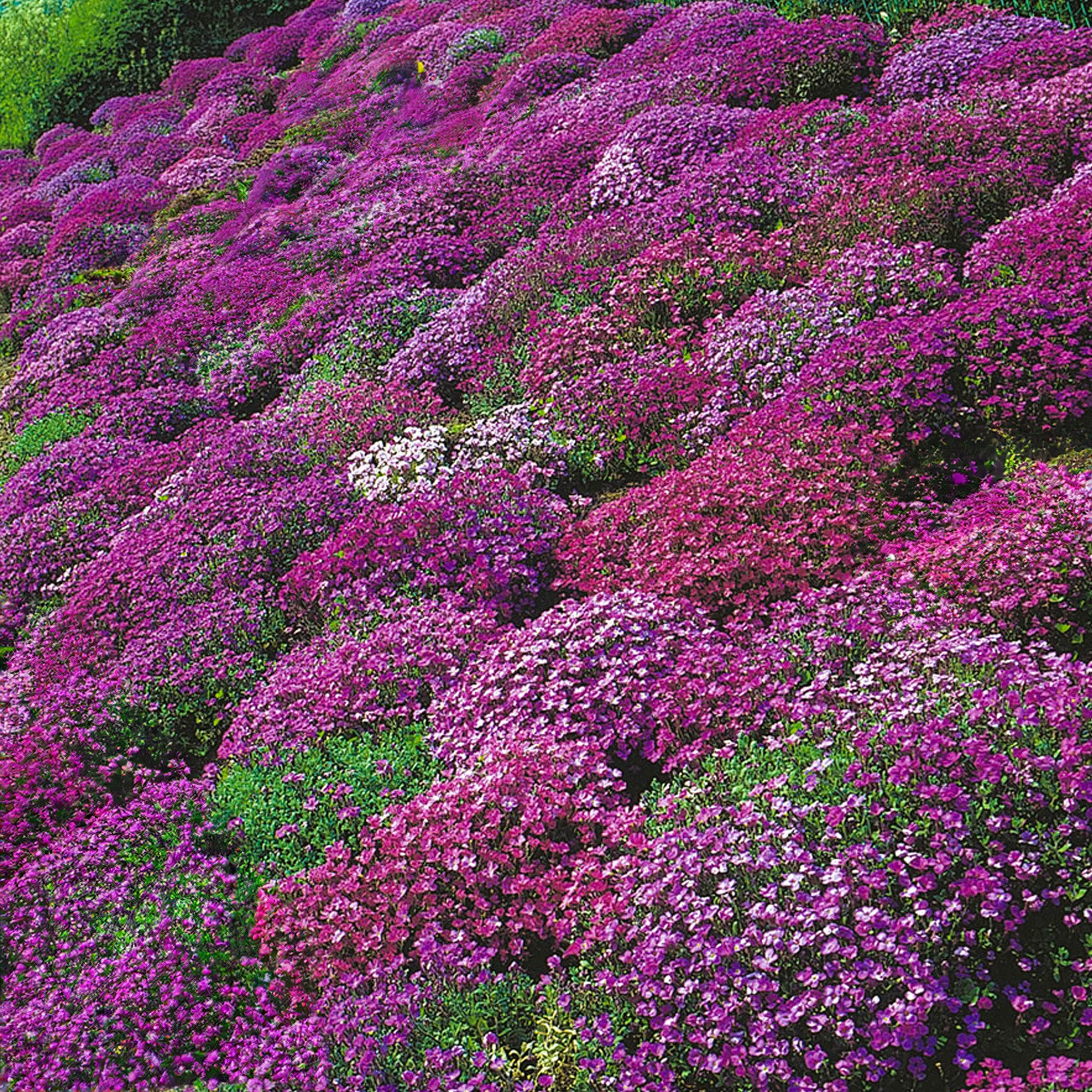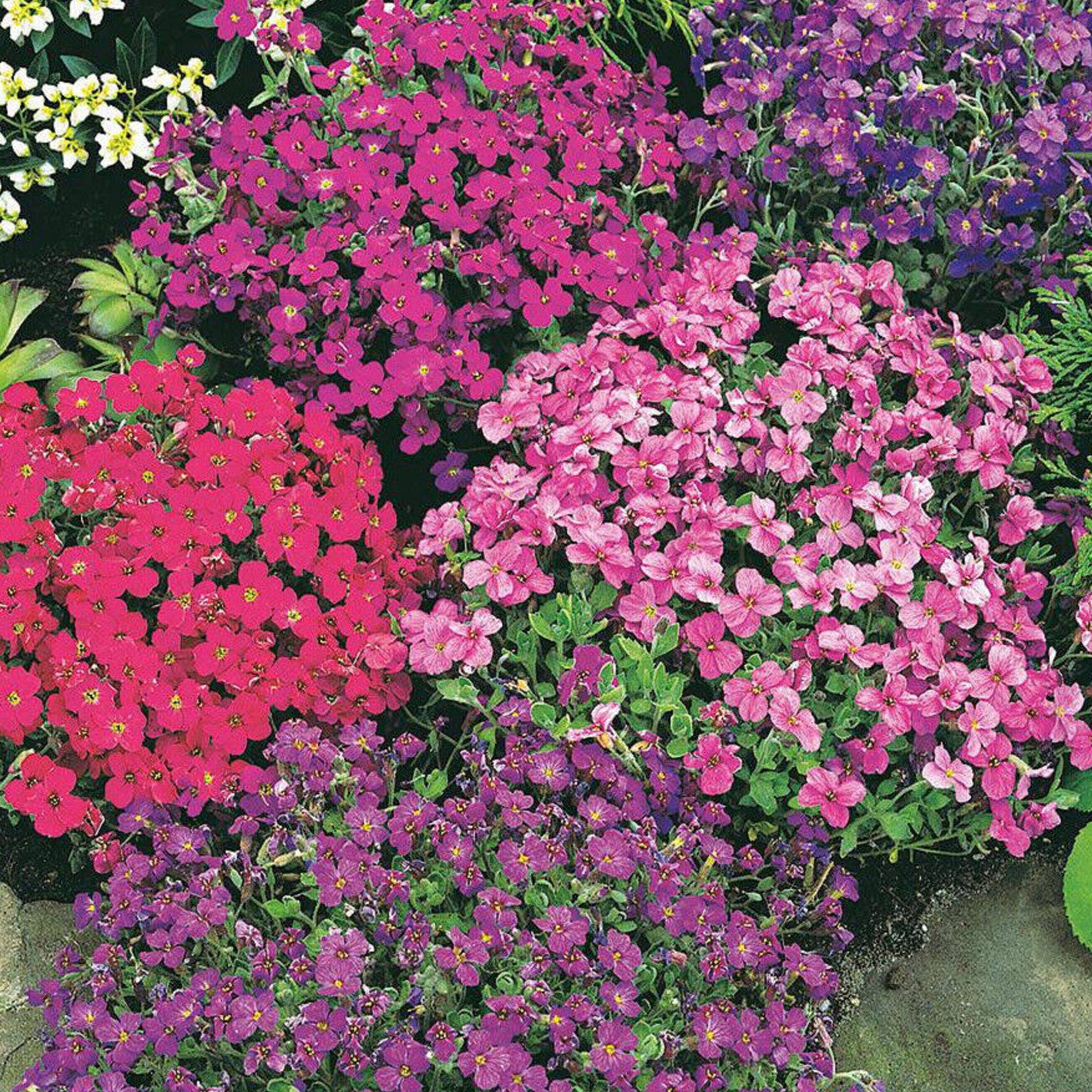 If you're looking to add a burst of colour to your garden between Spring and Summer, these Aubrieta Cascade plants are exactly what you need! They have become one of the most popular of rockery plants, with a reputation of being both hardy and reliable, whilst forming an array of gorgeous flowers in late spring and early summer. These ground cover plants will form a mat of vibrant colour in their flourishing season, whilst also being great trailing plants outdoor if you intend to plant them at the edge of a rockery or raised flower bed - planting a mixture of colours together gives off a wonderful, multicoloured effect.