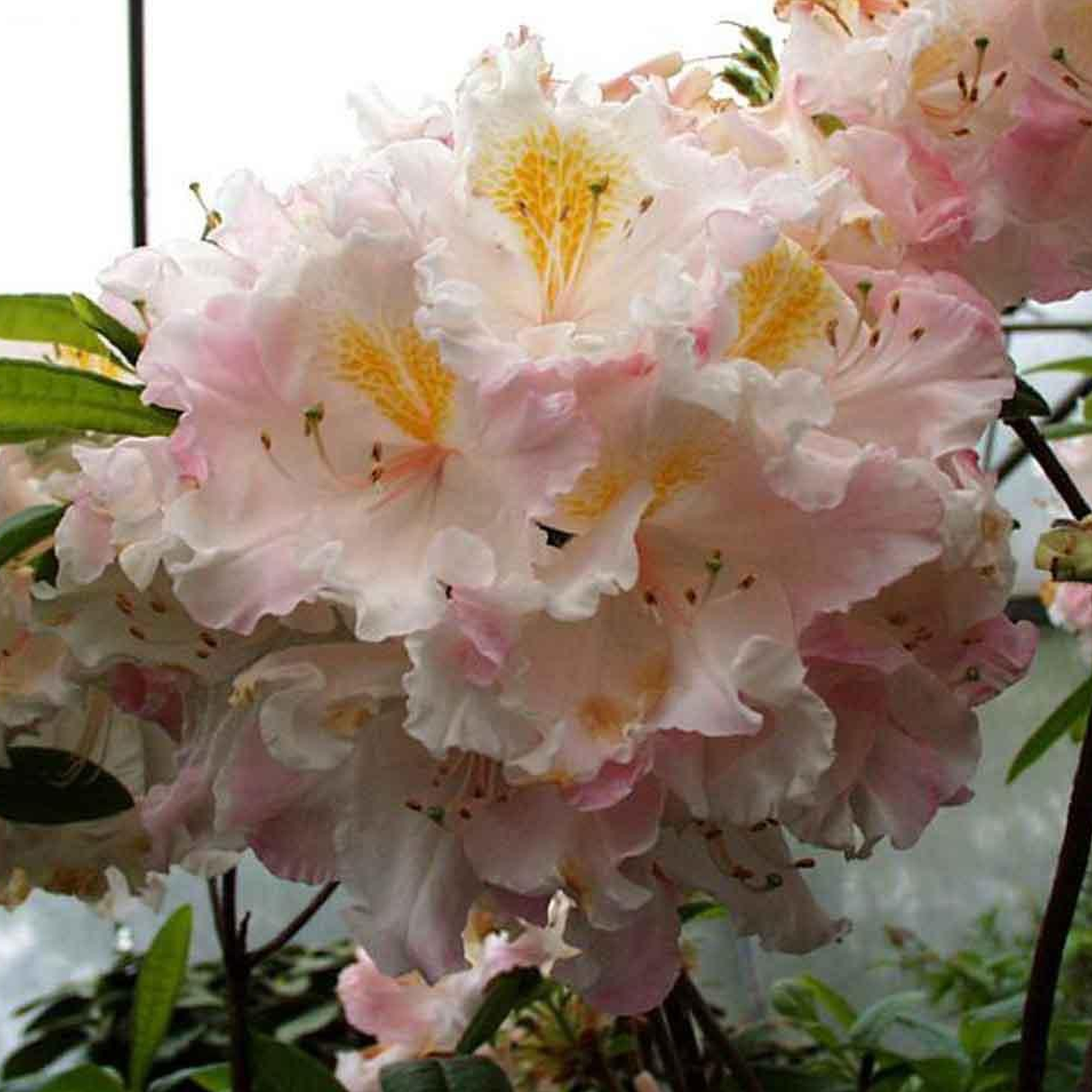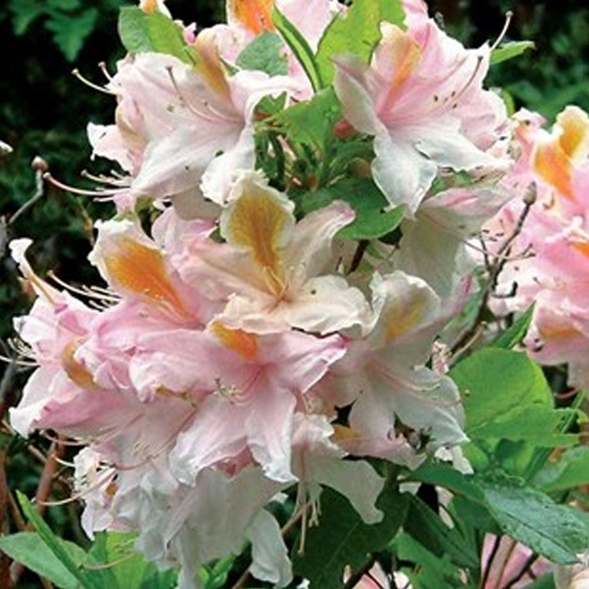 Azalea 'Arctic Flush' is a gorgeous looking compact evergreen shrub, it sports vibrant green foliage throught spring and summer before turning a deep bronze colour during Autumn. This azalea will produce trusses of large, beautiful blooms that are predominantly white with an attractive pink flush as well as a splash of yellow. These plants can thrive in either fully sunny or partially shaded areas in your garden, and they can tolerate most types of soil so long as it is well drained.