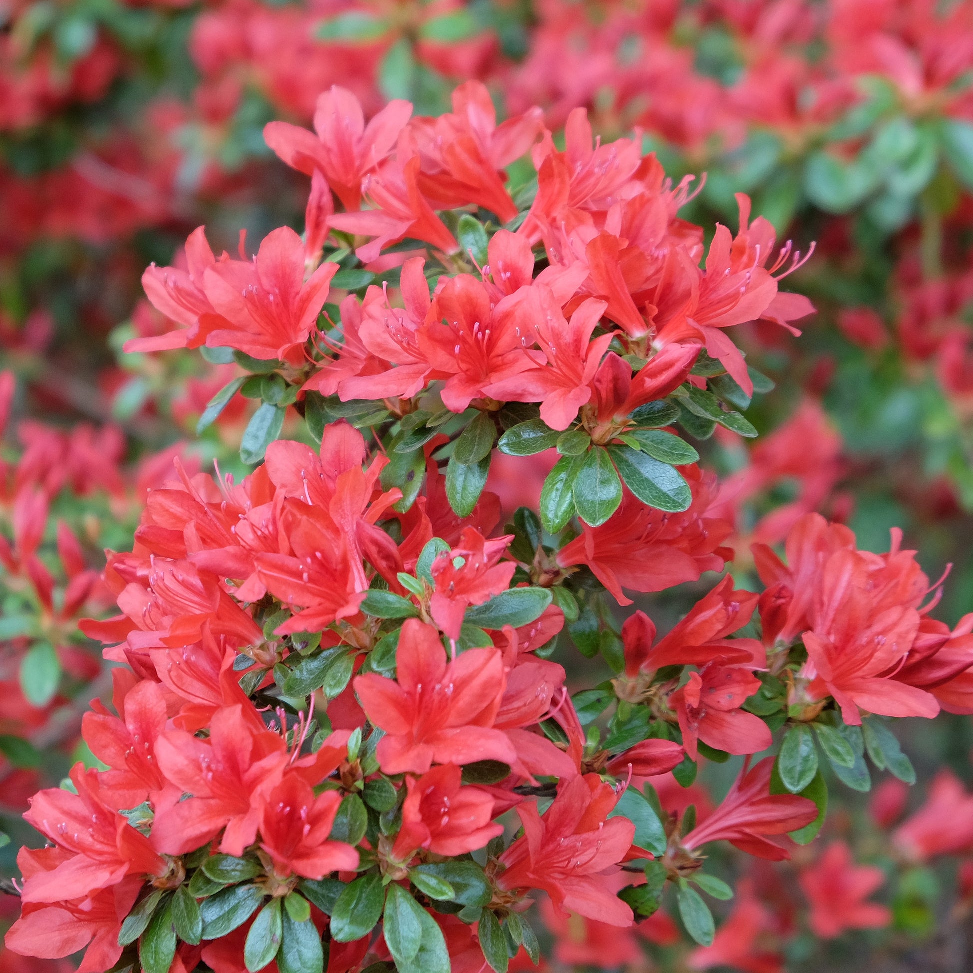 Plant Azalea Geisha Red in moist, well-drained, acidic soil in a slightly shaded spot where it will grow best. As well as providing stunning, spring colour, the evergreen foliage will also provide year-round ornamental value to your beds and borders.