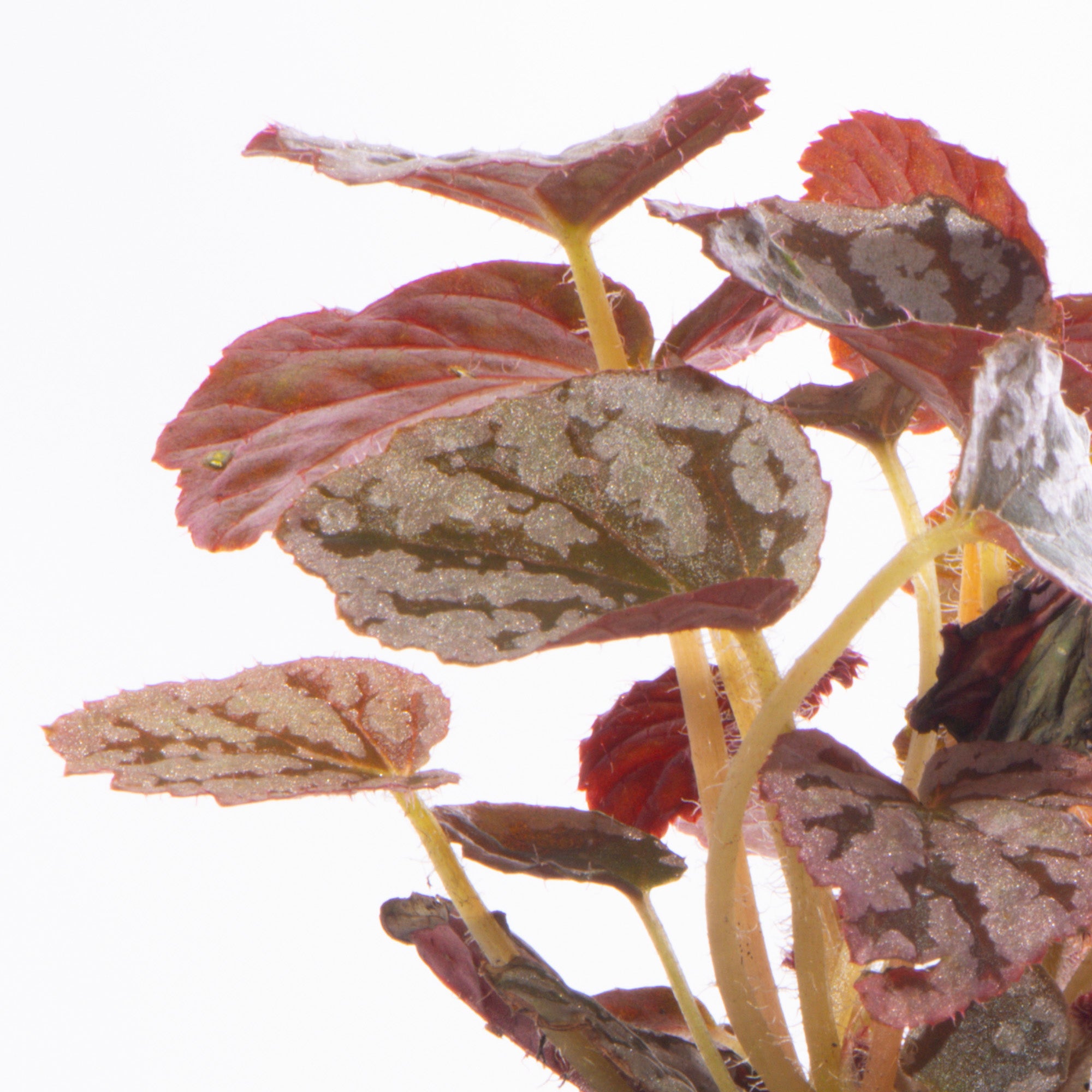 Begonia Rex Chayo is a unique, tropical houseplant which is sure to garner the attention of anyone visiting your home with its unusual metallic leaves. Round leaves will mature to a stunning teardrop shape in shades of silver with blue and pink hues.