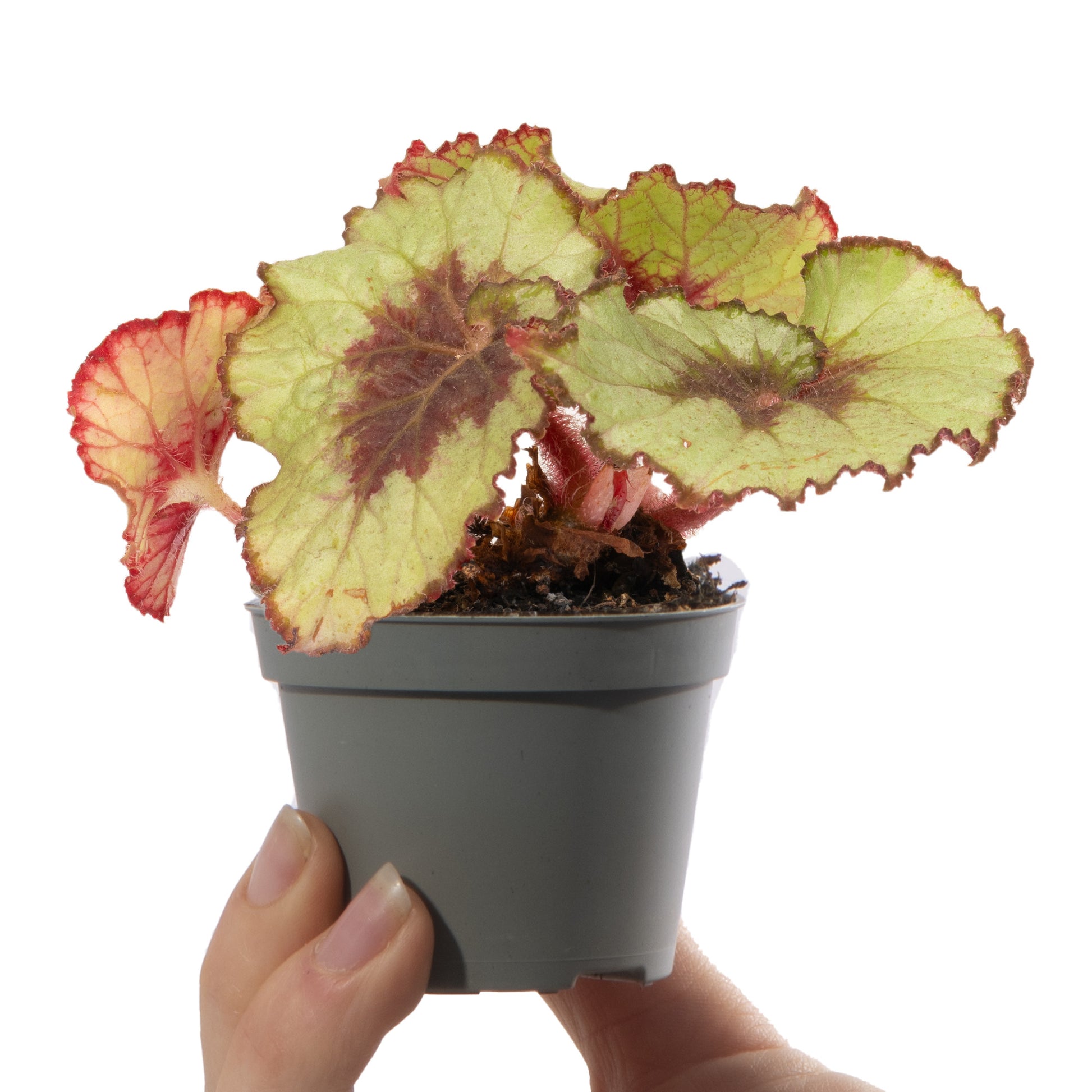 Begonia Rex Escargot is a small houseplant with an extremely eye-catching appearance. Its striking, spiral shaped leaves display shades of deep green with a silvery green spiral in the centre. The leaves closely resemble the pattern on a snail’s shell, which is where this unique plant gets its name.