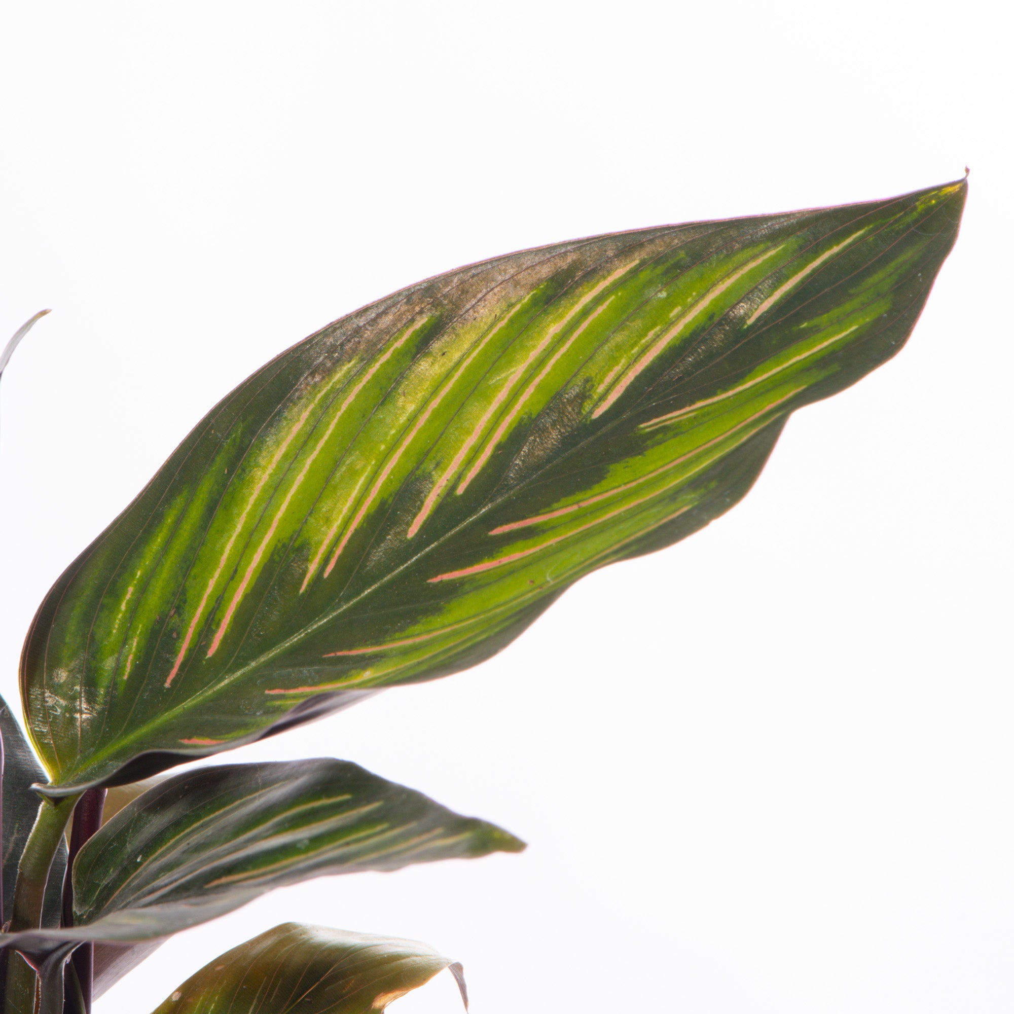 Calathea Mieli is a baby plant with beautifully ornamental foliage. Dark green leaves are painted with lighter green, creating a pinstriped effect. The pale green stripes even look like they’ve been hand-painted on, creating a stunning show of foliage for any room in your home.