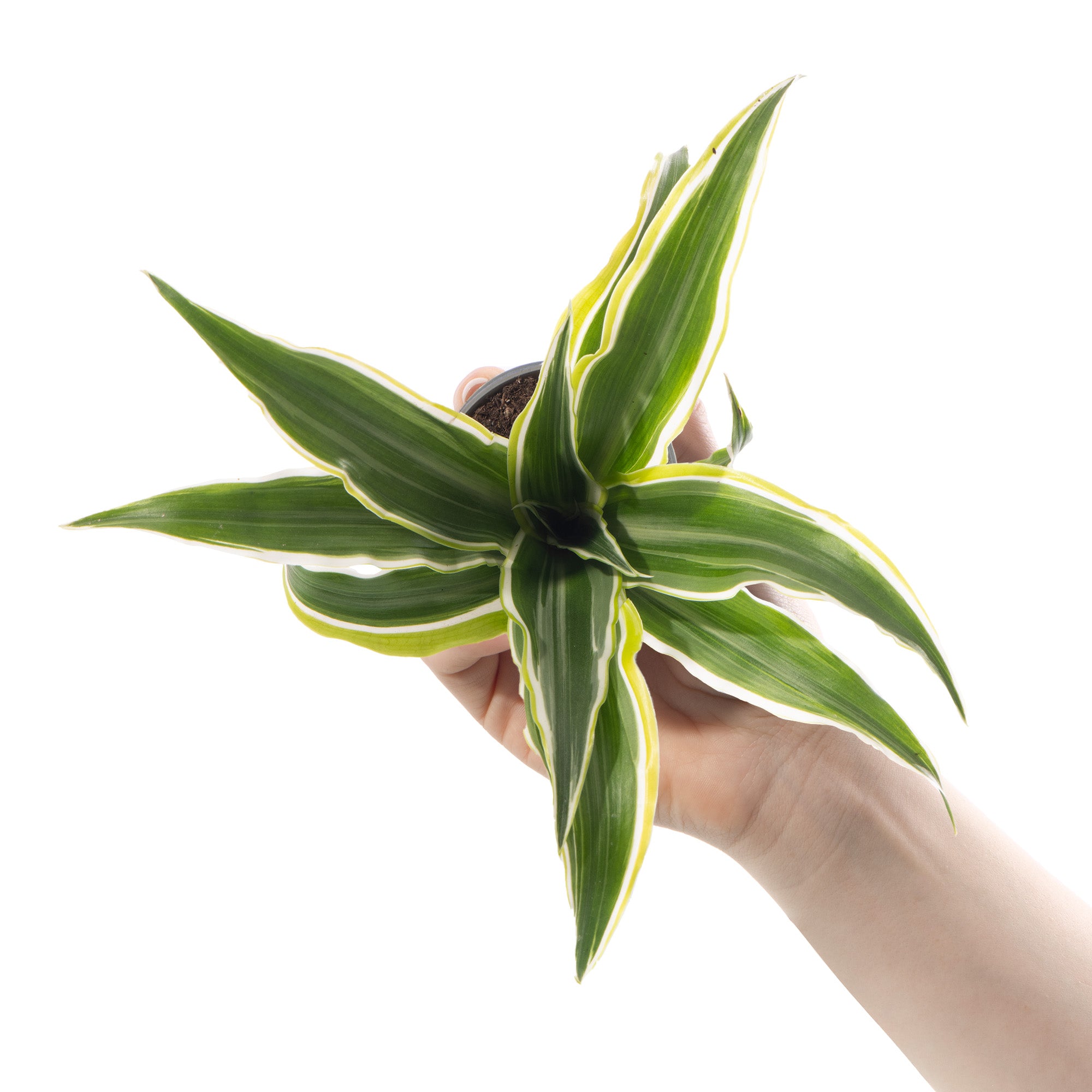 Dracaena deremensis Lemon Surprise, commonly known as the Dragon Tree, is a popular, low maintenance house plant with beautiful, broad green leaves with lime green edges and white stripes.