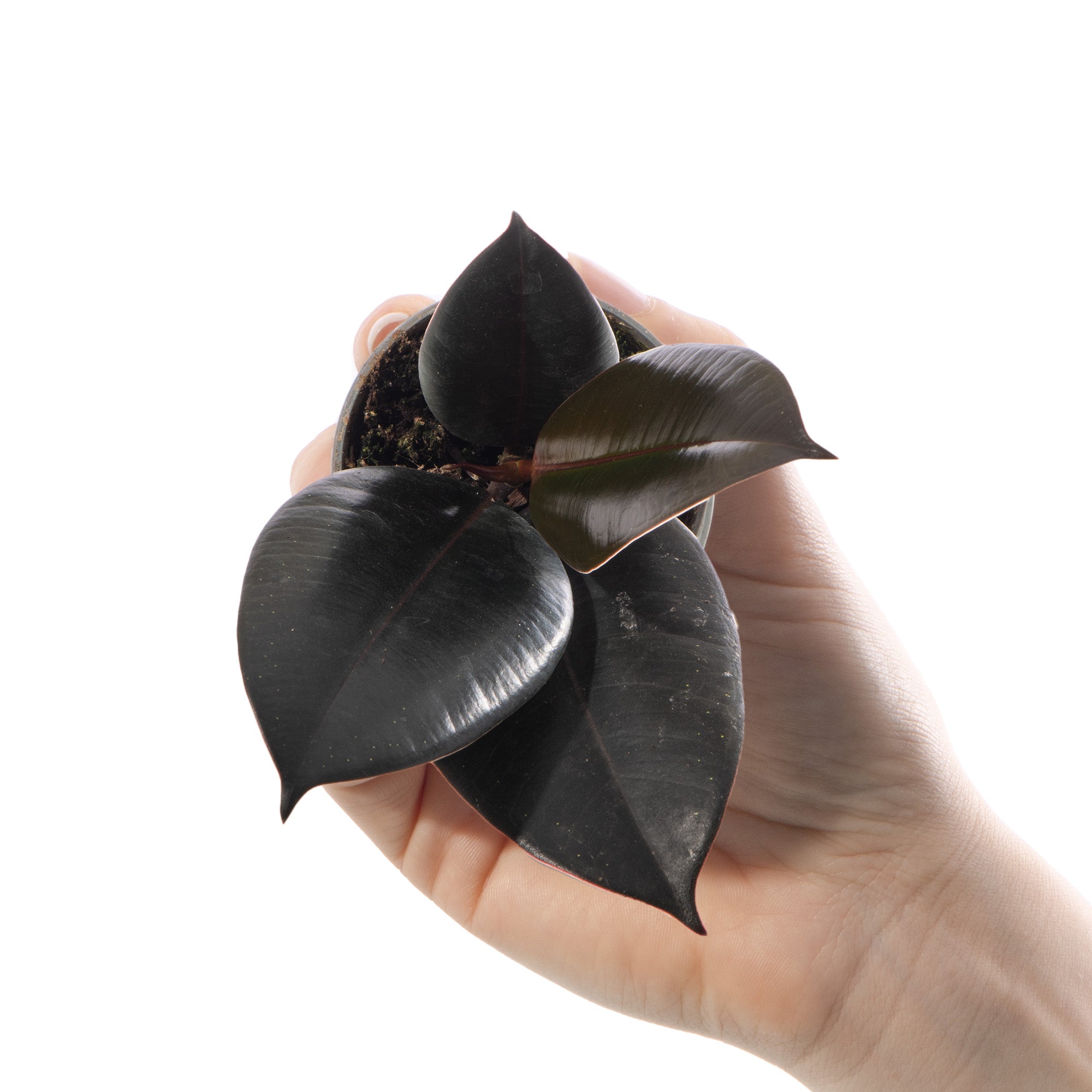 Ficus Robusta, also known as the Rubber Plant, is a small houseplant with large, distinctive, broad leaves in shades of deepest green. This tropical plant gets its nickname from the latex inside its stems. This variety is toxic to pets and children so make sure to keep it away from them!