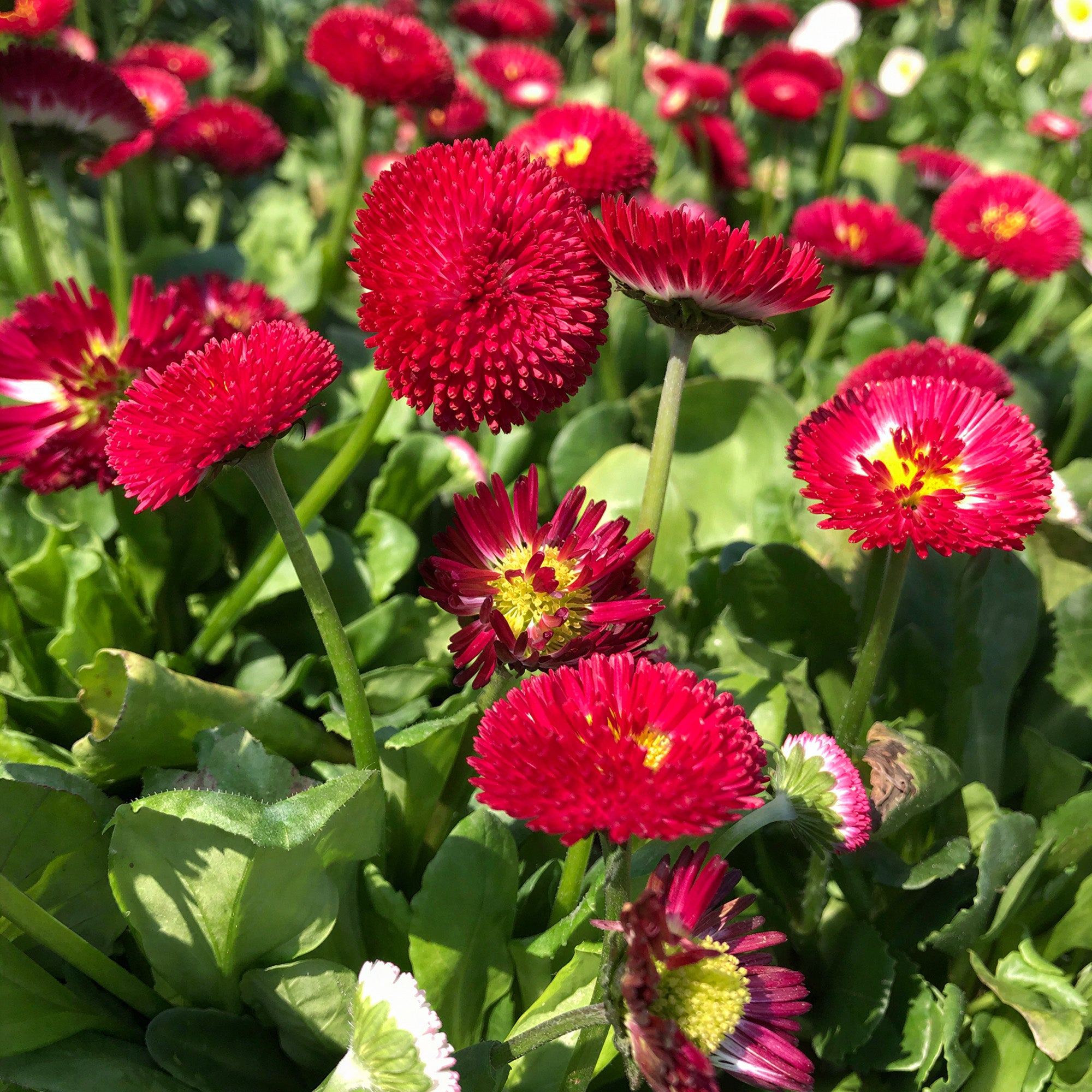 When planting your gorgeous red Bellis, choose a spot in full sun for the most prolific floral display. It is crucial that the soil is moist but very well-drained. Water the plants regularly after planting to help them establish their roots, but be careful not to overwater, as Bellis dislike sitting in constantly waterlogged ground, which can easily cause their roots to rot.