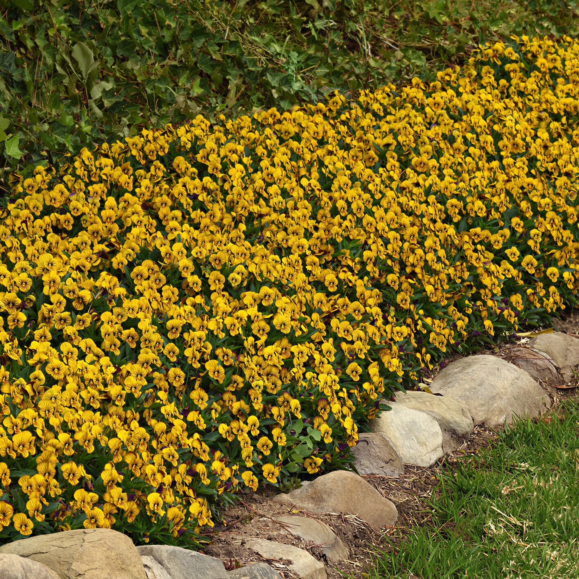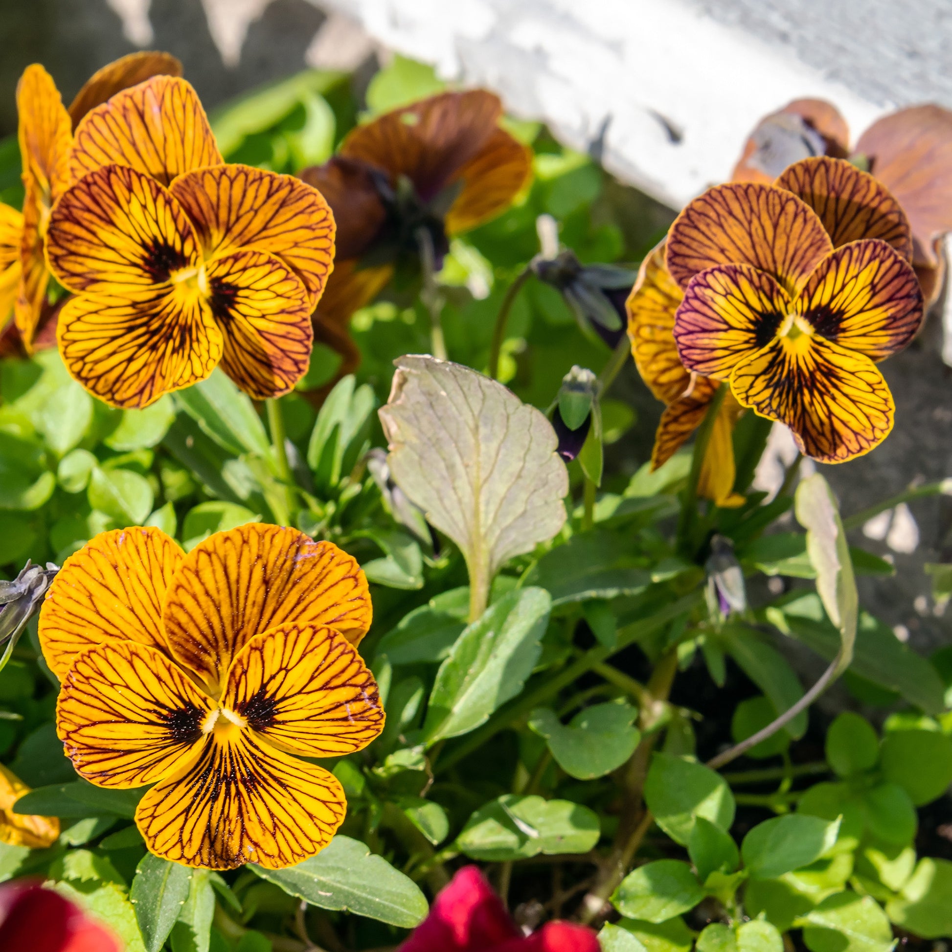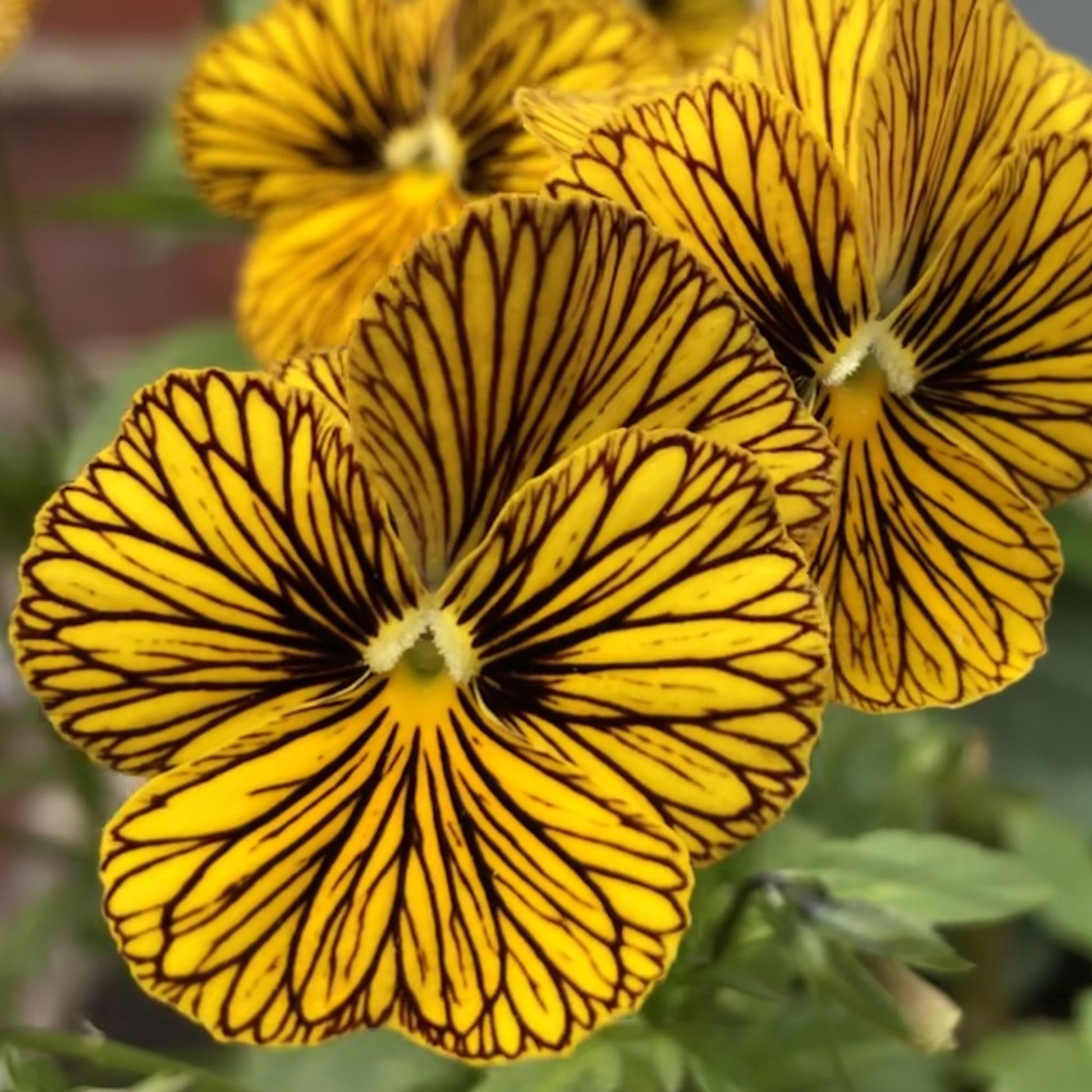 This six-pack of Viola 'Tiger Eye' bedding plants features one of the most striking and unique patterns available. Each bloom has a stunning golden-yellow colour, overlaid with an intricate network of fine black veins that radiate from the centre, creating its famous 'tiger's eye' effect. Known for their hardiness, they have an exceptionally long flowering season, providing a continuous and spectacular display for many months. They have a fantastic impact in beds, borders, pots, and hanging baskets.