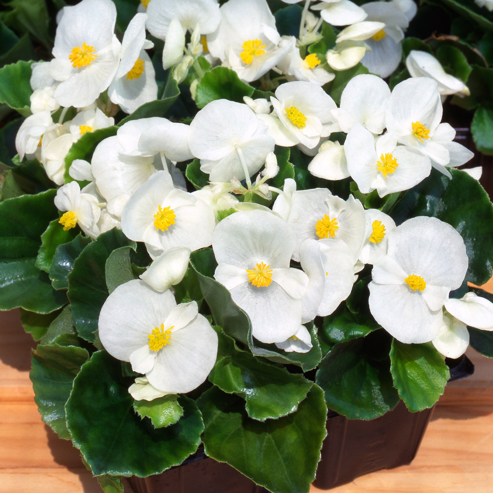 This six pack of Begonia F1 Heaven White bedding plants produce an abundance of gorgeous flowers that bloom during the Summer months. The lush, green foliage that is present throughout these Begonias ensures a gorgeous offset between the pretty colours of the plants elegant, white petals. A bright yellow, central bud is also present to bring more vibrance to the overall appearance, meaning these easy-to-grow plants will be great for flower beds and plant displays when they establish themselves. They can be planted straight from the tray upon arrival, flourishing with ease when given the correct care.