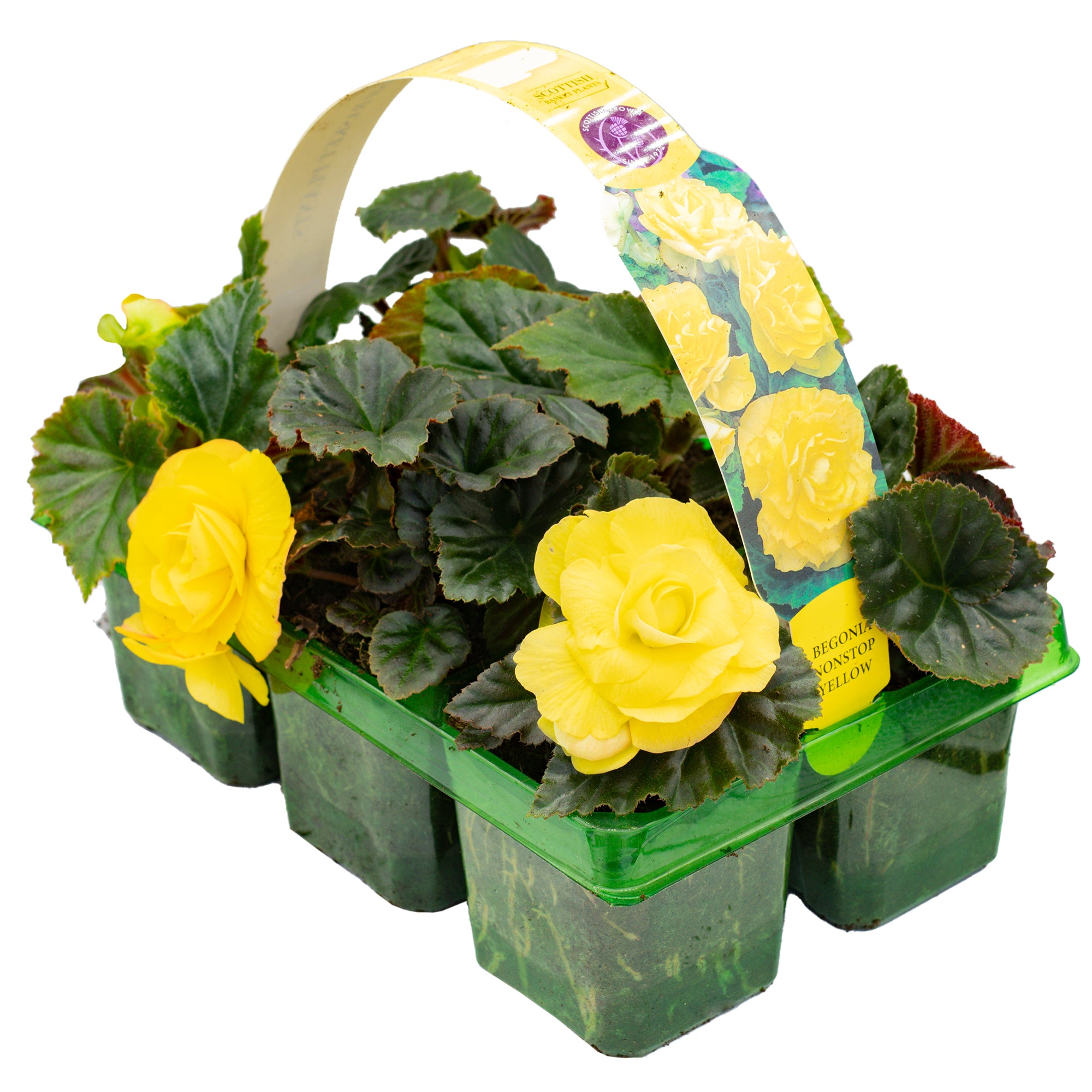 You will receive a 6 pack of large Begonia plug plants at a garden ready size. They can be easily removed from their 100% recyclable tray, and then planted with very little fuss.