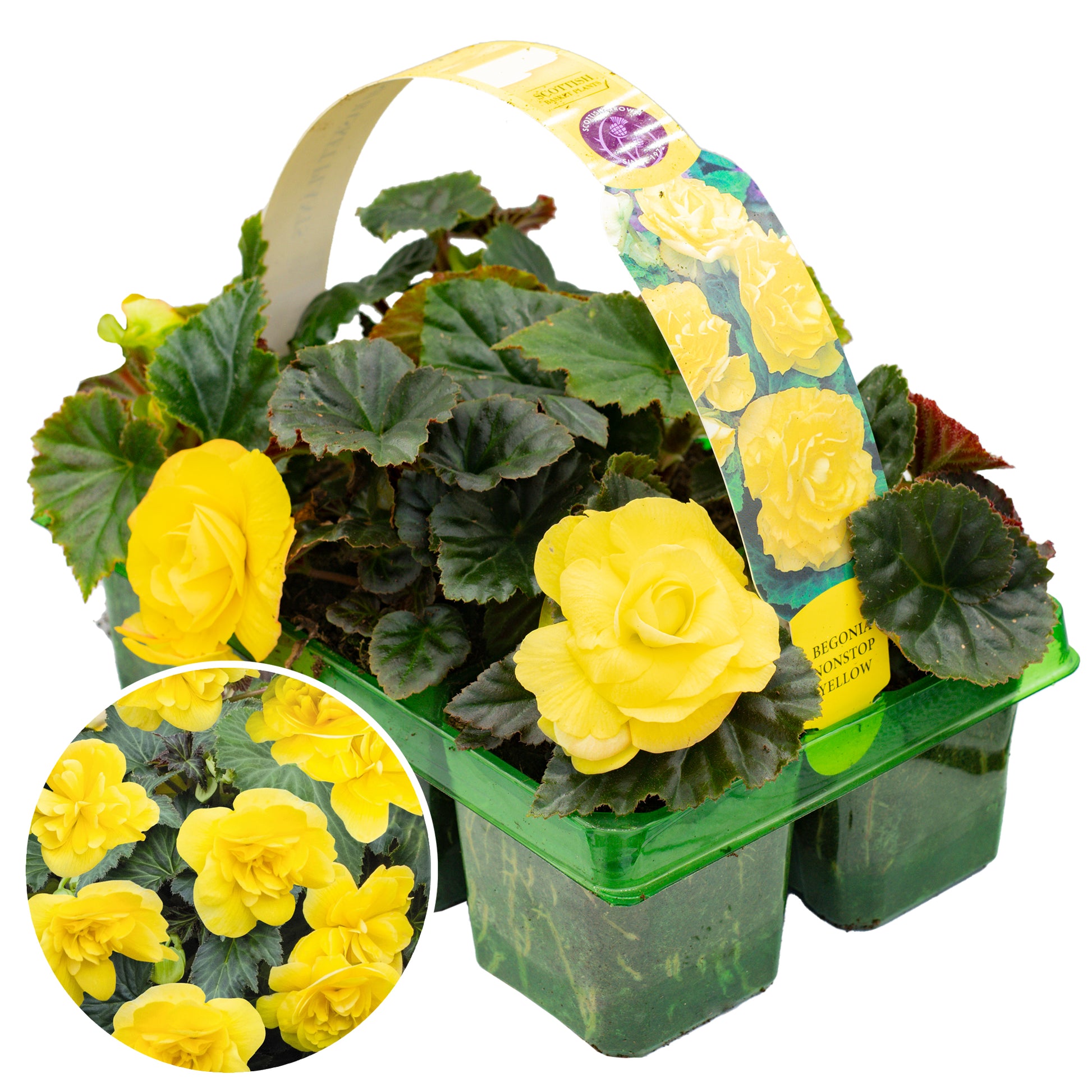 Begonia Non-Stop Yellow basket plants will illuminate your garden throughout Summer like never before! Its gorgeous, yellow flowers are fully double, allowing them to easily make a noticeable impact in your garden. Each flowerhead contrasts against the lush, green foliage of these plants, making a gorgeous display of colour no matter where you place them. All of these brilliant features makes them the perfect selection to show off in any hanging baskets, flower beds, borders, pots or containers.