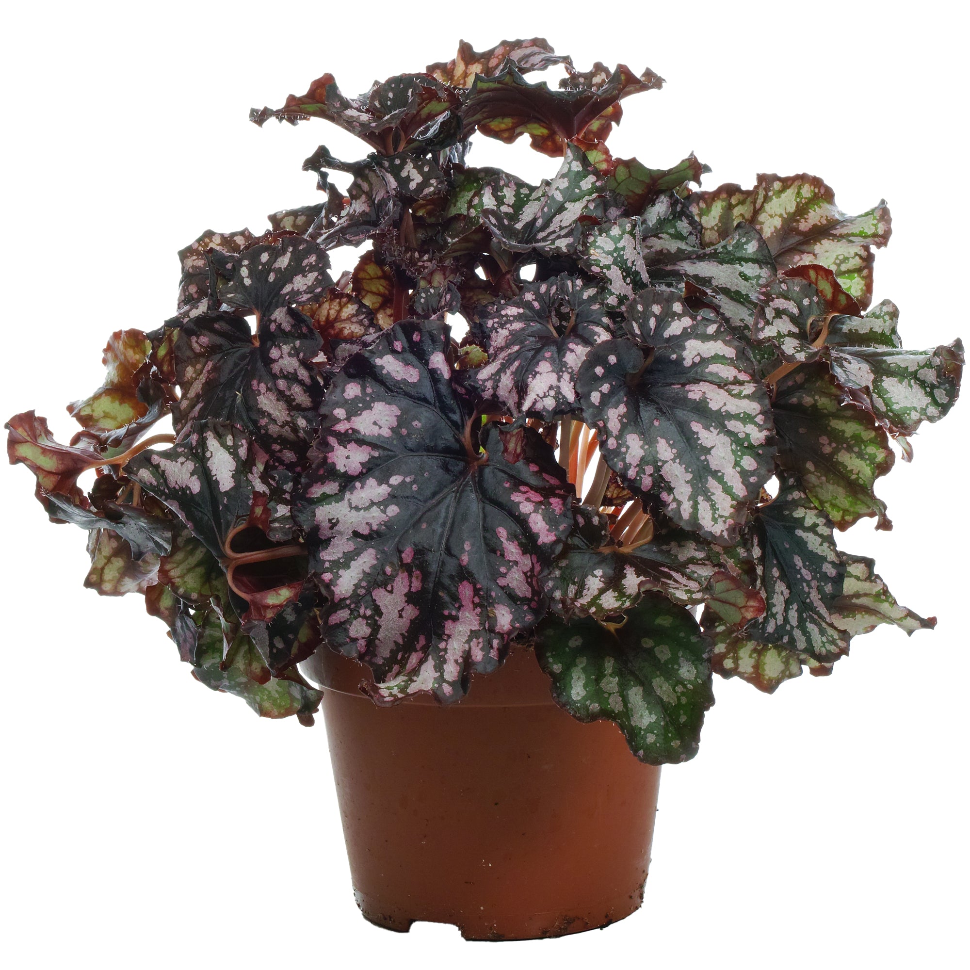 Rex Begonias, commonly known as King Begonia, are best known for their striking foliage. This Cumbia variety has foliage full of colours that can be seen differently from all angles. There are lighter shades of silver-green, a faded pink shade and a deep black in the centre which seaps out into a veining pattern throughout. King Begonia will bring all of its effective air-purifying qualities to the room it is placed in, ensuring the atmosphere stays fresh and stress-free to live in. You should place this Rex Begonias in partial shade, whilst avoiding direct sunlight due to the harm it will cause to the plants evergreen leaves. Water the plant when the soil is dry to touch - once a week will be suitable for this until its dormant period of Winter, which, by that point you can limit it to just once every two week period.