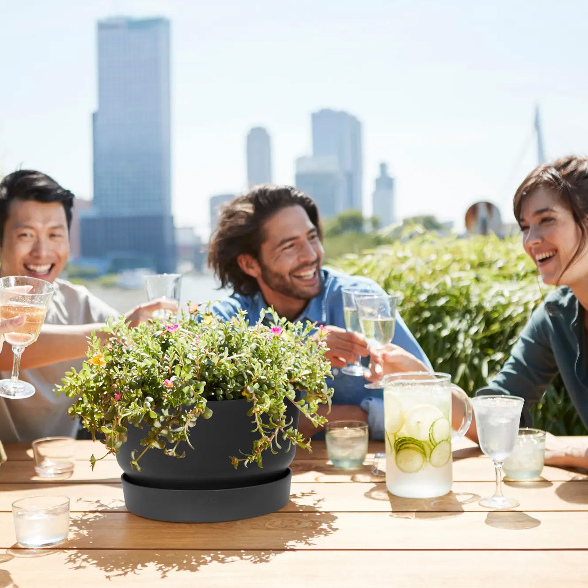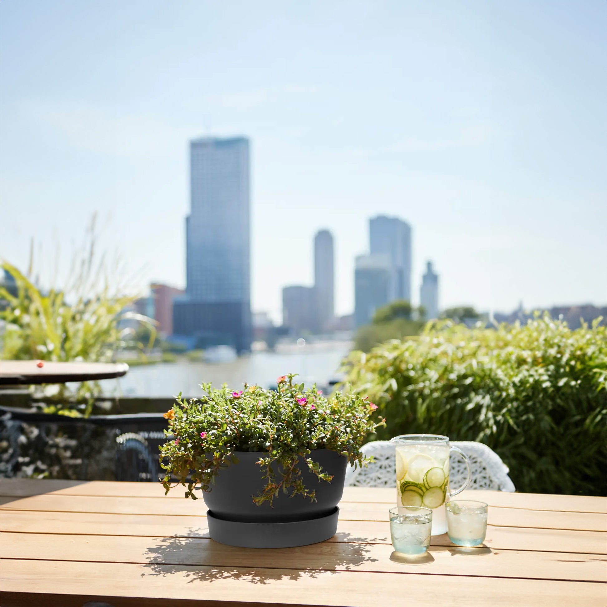 The Black Elho Greenville Bowl Pot is a great option for planting many varieties of outdoor plants in and around your garden. Coming in an array of sizes, you'll have plenty to choose from to fit your displays. The bowl-like shape of the pot is ideal for the most popular shrubs, perennials and herbs that gardeners grow. It will add colour and character to your outdoor space, as well as a simple, modern look to patios, pathways and more.