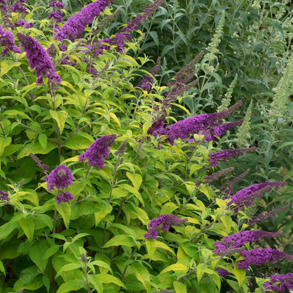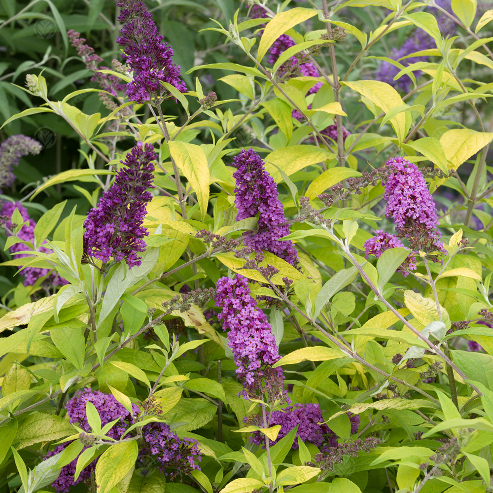 Buddleia ‘Moonshine’ is a great choice for a bright and showy summer garden! Unlike many other breeds of buddleia moonshine grows into a more compact plant, making it the perfect choice for patio or container planting and allowing easier pruning and shaping. During the summer clusters of small, sweetly scented purple-pink flowers growing on arching stems above deep yellow foliage that matures into a bright lime green.