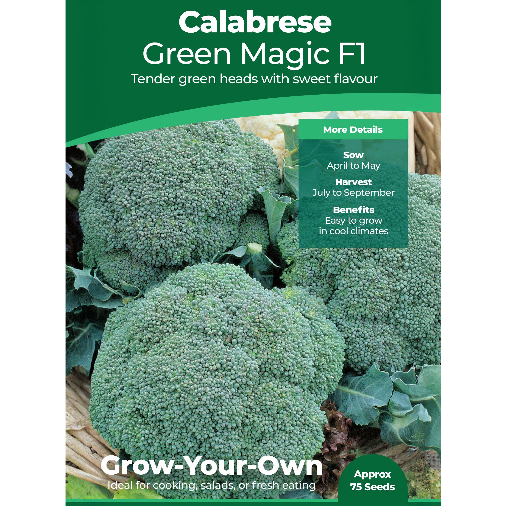 Calabrese Green Magic F1 is a robust and high-yielding variety that stands out for its large, uniform heads and sweet, tender florets. This hybrid variety is particularly valued for its reliability and resistance to common brassica diseases. The dense, deep green heads are not only packed with flavour but also rich in vitamins, making them a nutritious addition to any vegetable garden. Whether you enjoy them fresh, steamed, or frozen, Calabrese Green Magic F1 delivers consistent quality and taste.