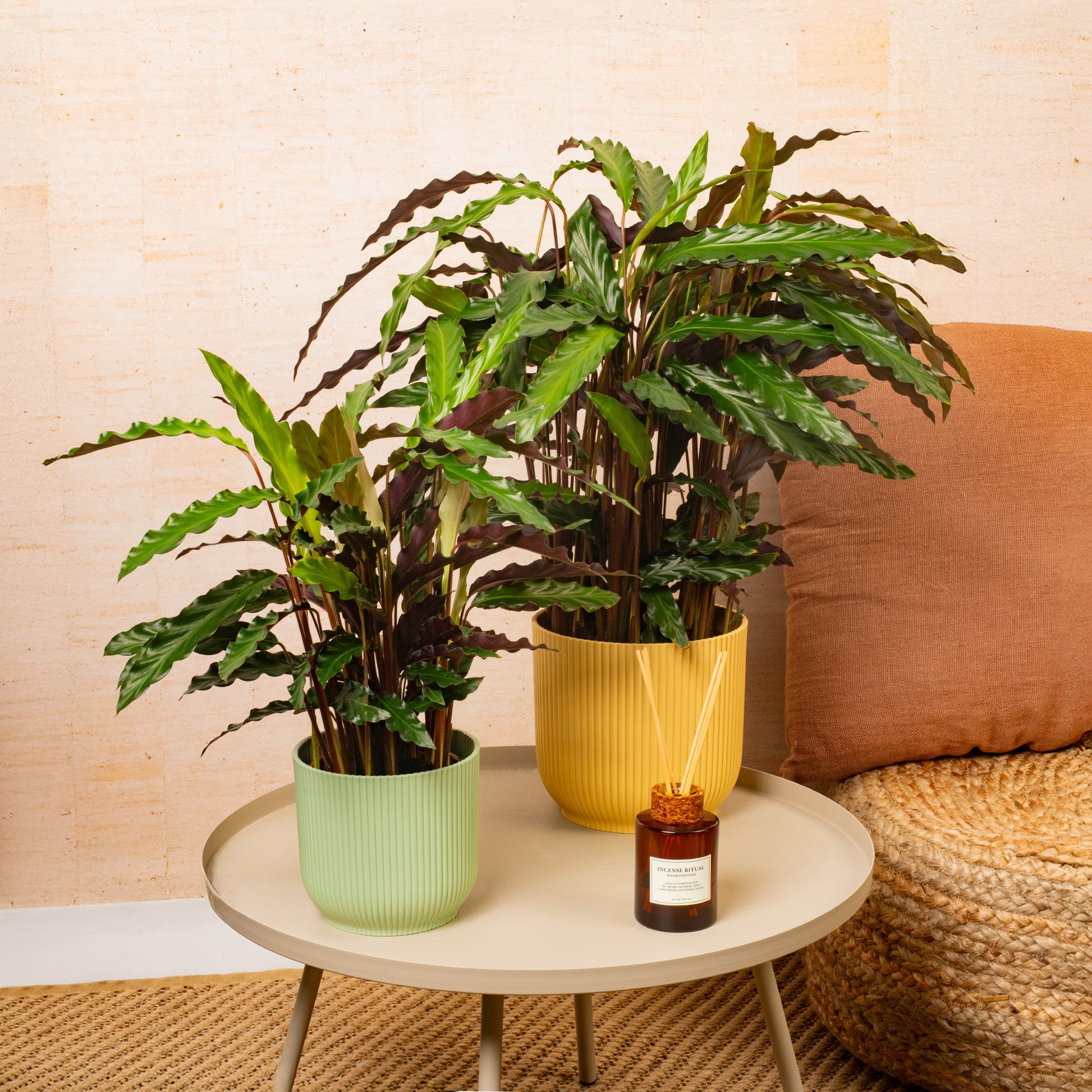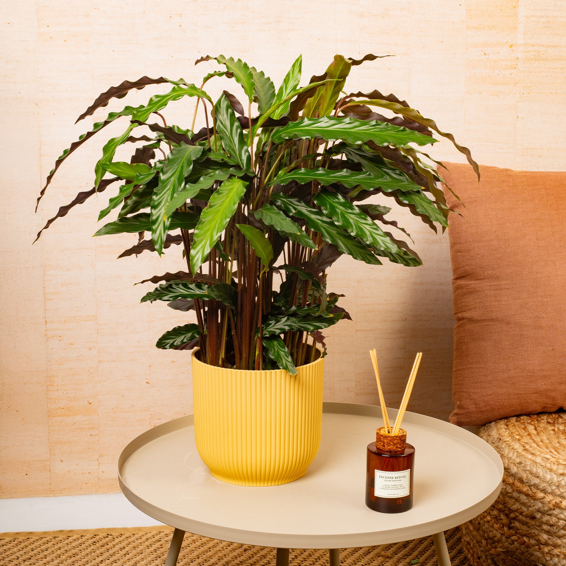 Introducing the captivating Calathea Elgergrass, an enchanting addition to your indoor plant collection that will bring an air of sophistication to any space. With its stunning, elongated leaves adorned with a mesmerising pattern of green and silvery-grey stripes, this elegant plant adds a touch of refinement to your home or office. Transform your living space with the Calathea Elgergrass - a chic and graceful plant that embodies the perfect balance of form and function. Order now to experience the beauty, elegance, and air-purifying benefits of this remarkable indoor plant.
