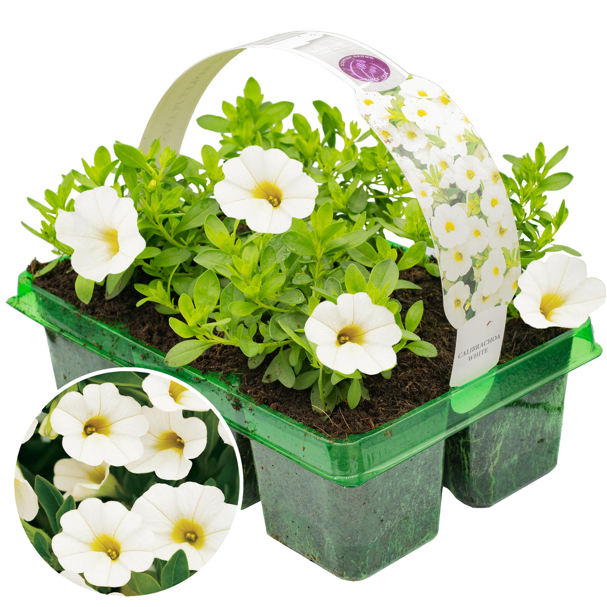 Calibrachoa White is an elegant, trailing plant with soft white, bell-shaped flowers which will cascade beautifully over hanging baskets. The flowers will bloom in abundance from late spring, all the way through the summer months until early autumn, creating an outstanding floral display. These blooms look spectacular on their own but will also compliment other flowers beautifully.