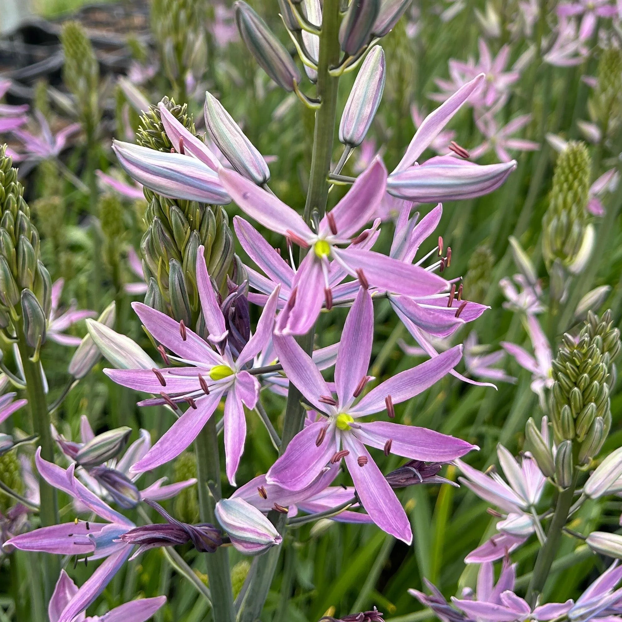 Aurora is a striking Camassia variety that adds delicate colour and texture to any outdoor space. These easy to grow bulbs will be the envy of your neighbours and are ideal for adding height to beds and borders. From late spring into early summer, tall spikes bear masses of open, star-shaped light mauve purple flowers. As they mature, the blooms adopt more of a pink shade with a blue stripe on the underside. Camassias make excellent cut flowers for indoor displays and are a magnet for pollinators, enticing bees and butterflies into the garden.