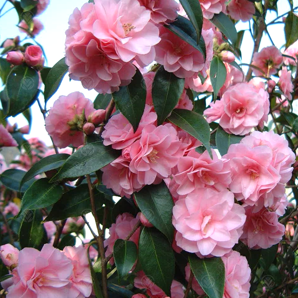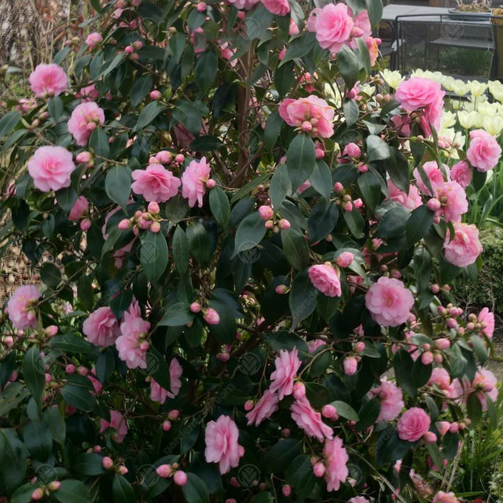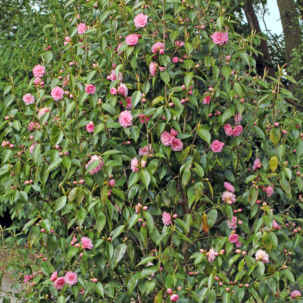 Camellia 'Spring Festival' is a reasonably hardy evergreen shrub which will retain its foliage throughout the winter, though care must be taken to protect it from winter frosts. Plant in well-drained acidic soil and support with ericaceous compost. Maintain soil moisture and keep in partial sun or shaded.