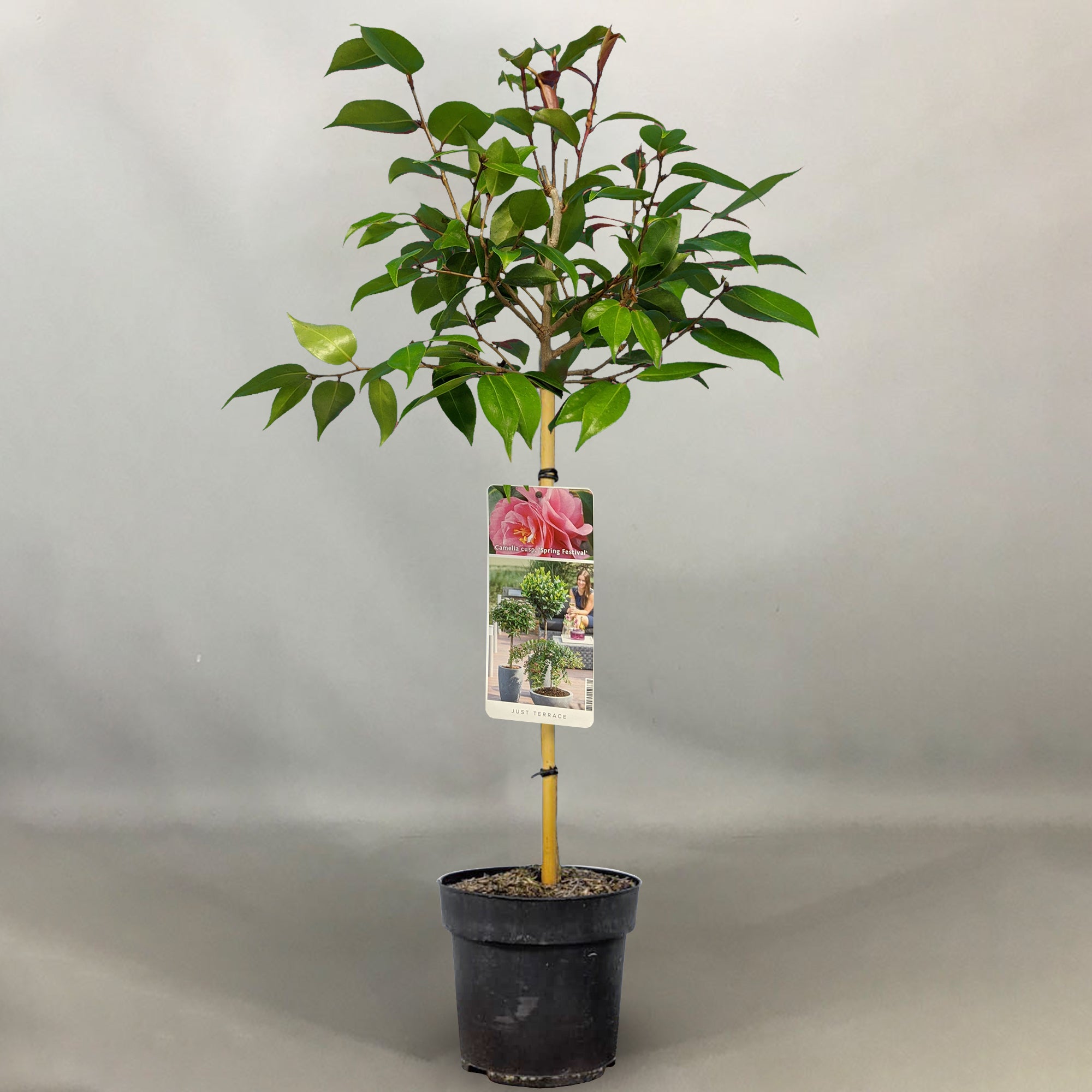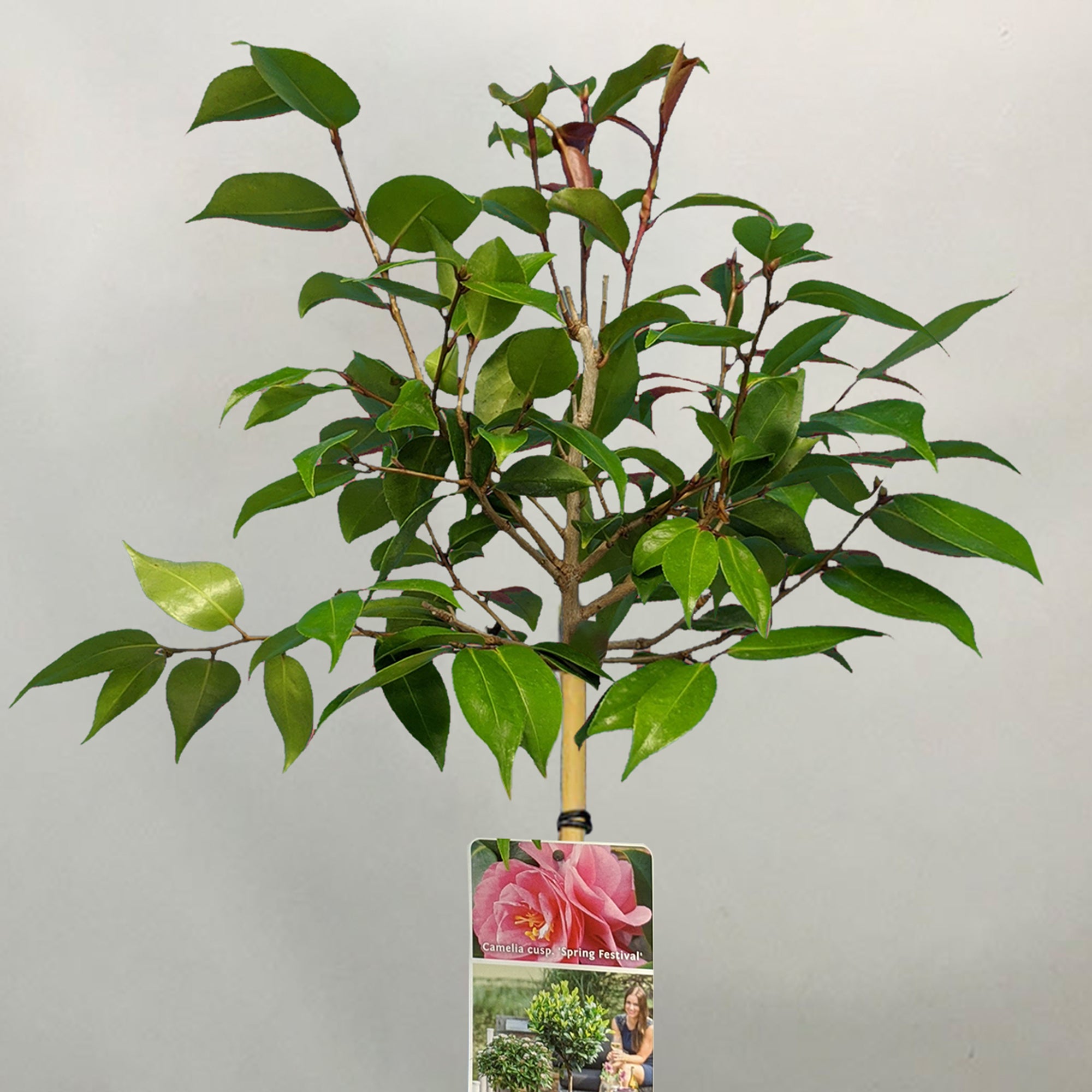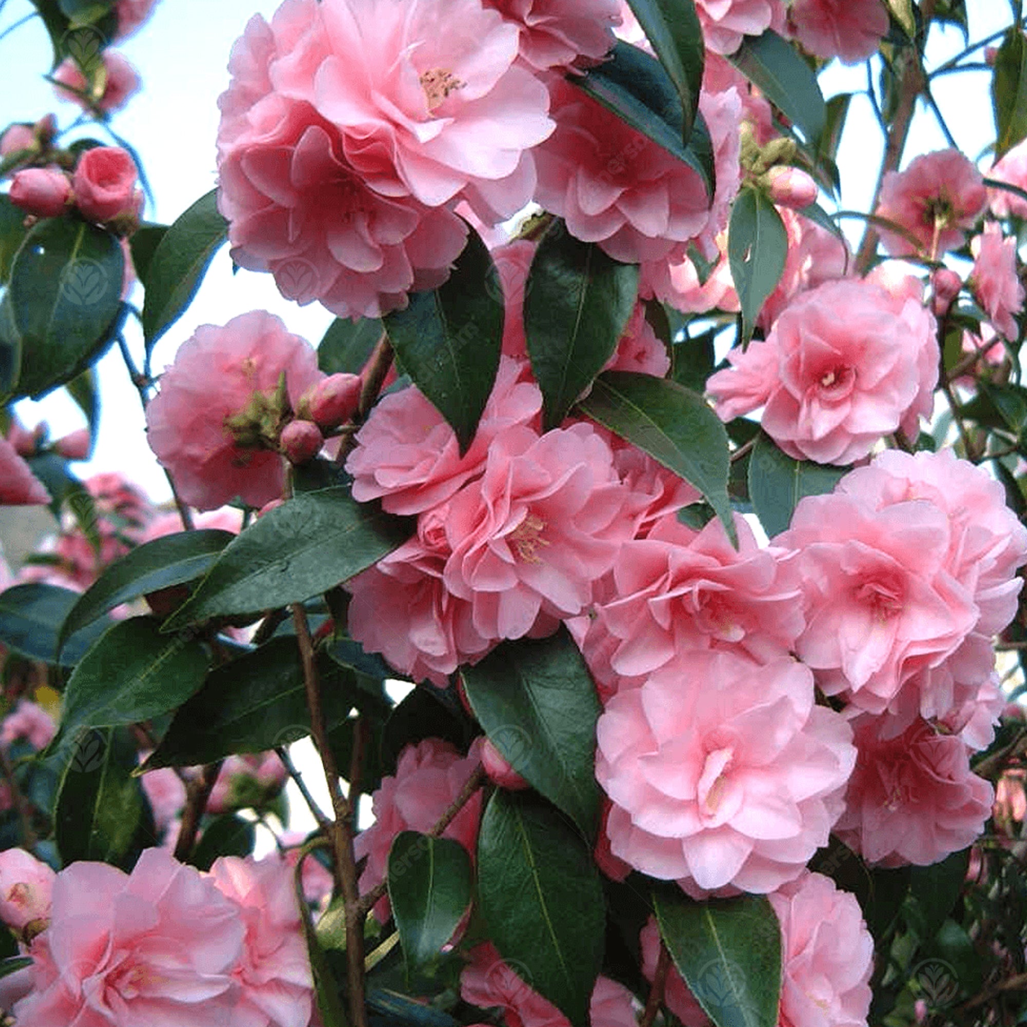 Camellia 'Spring Festival’ is a beautiful ornamental tree that has gorgeous green foliage which grows in a spherical shape. During Spring and Summer, they will bloom snowy pink and white flowers that will brighten up your patio, border, mixed containers and small garden - making it very pleasing to the eye.