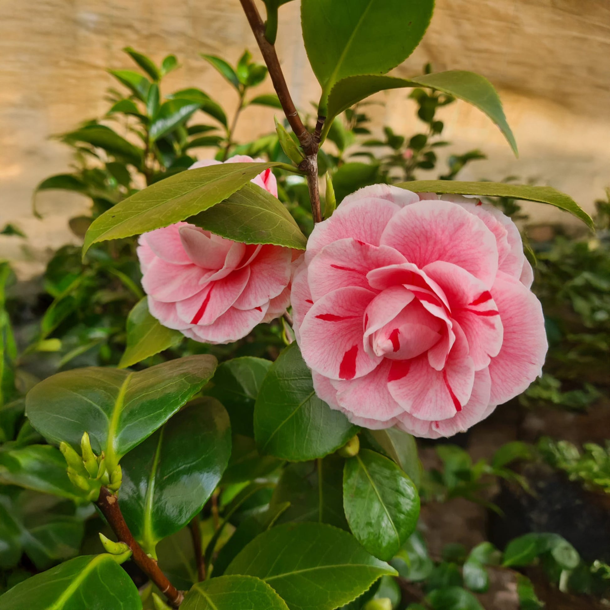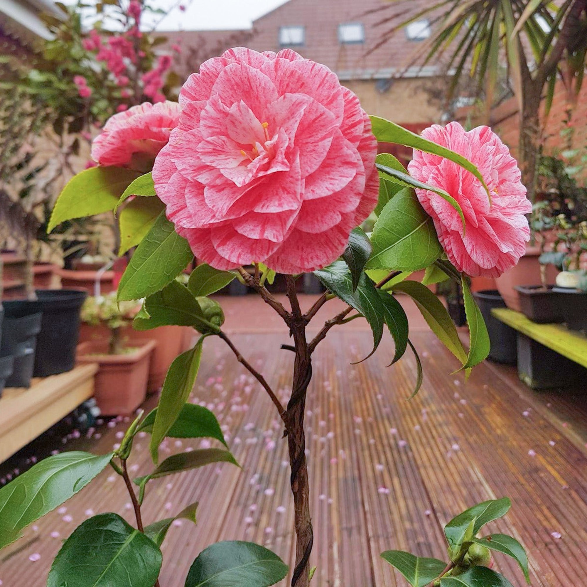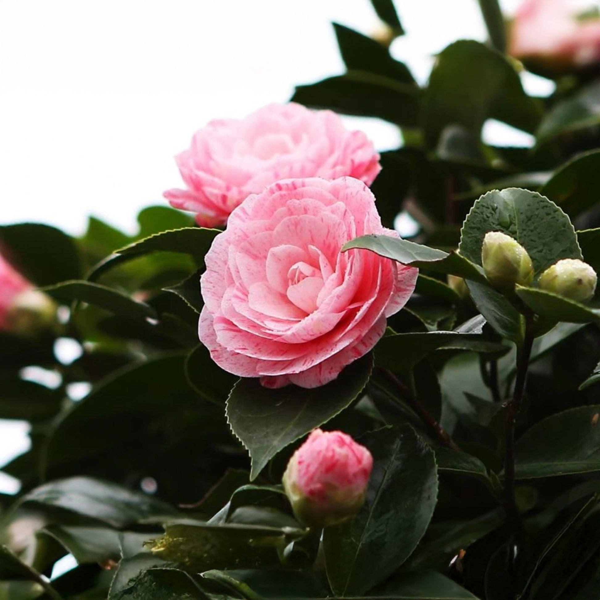 Caring for this Camellia shrub is simple. Plant it in well-drained soil or use ericaceous compost if growing in containers. Choose a spot with partial shade, sheltered from harsh morning sun and frost, to protect the buds and flowers. Keep the soil consistently moist, especially during dry spells, and feed with an ericaceous fertiliser in spring. Compact and fully hardy, it’s a versatile shrub that looks just as good in a pot on the patio as it does planted directly into the ground.