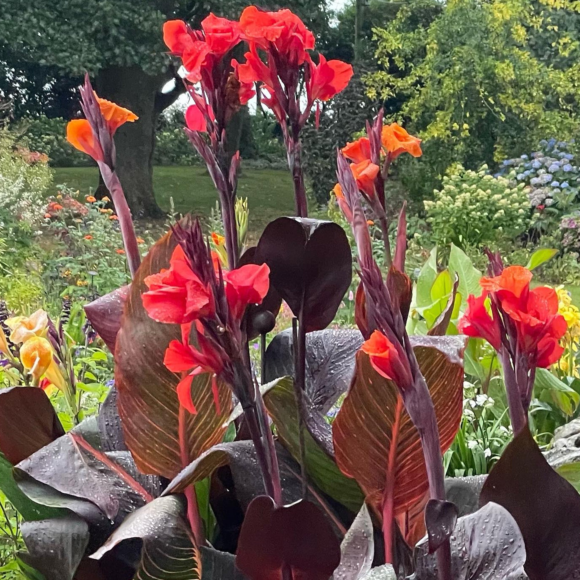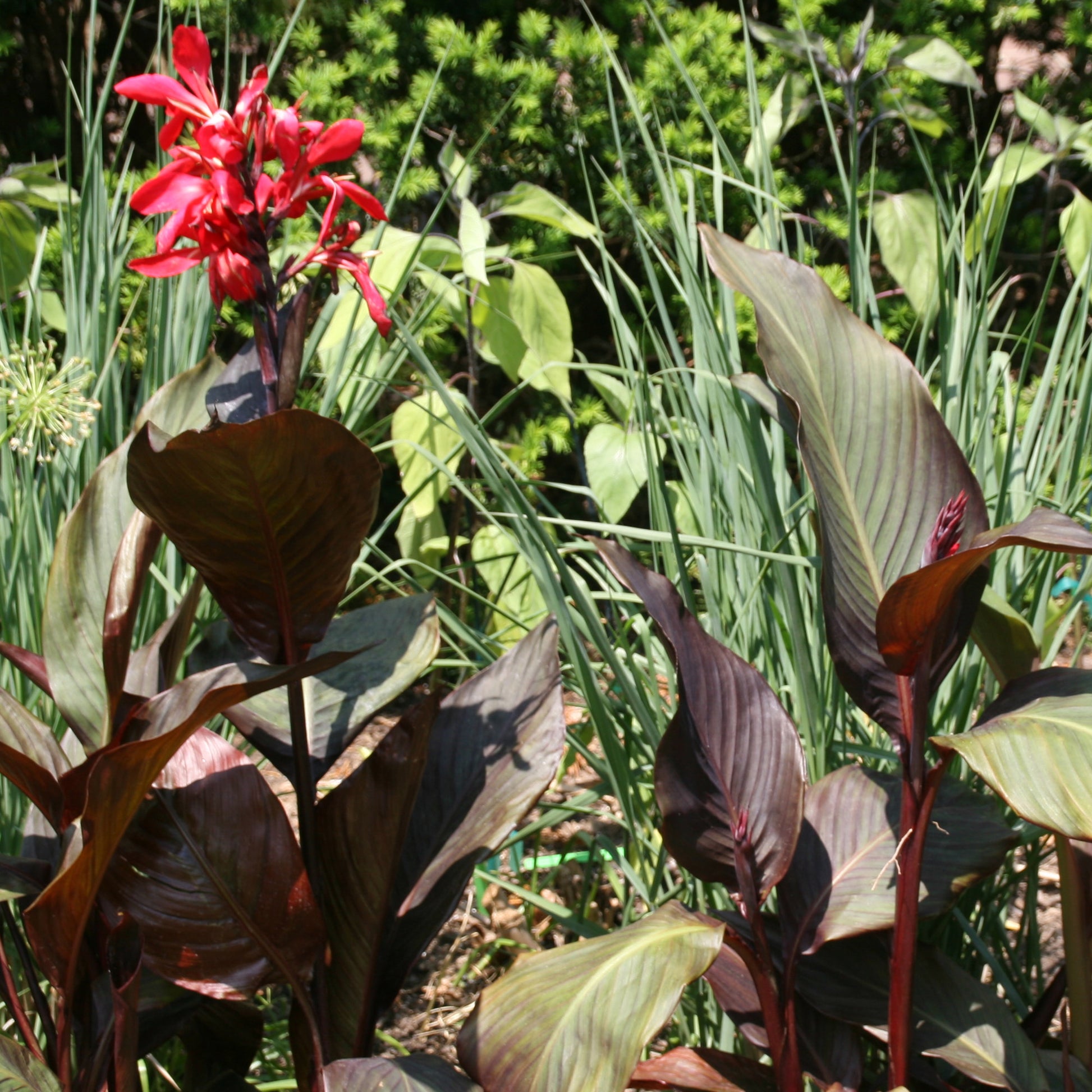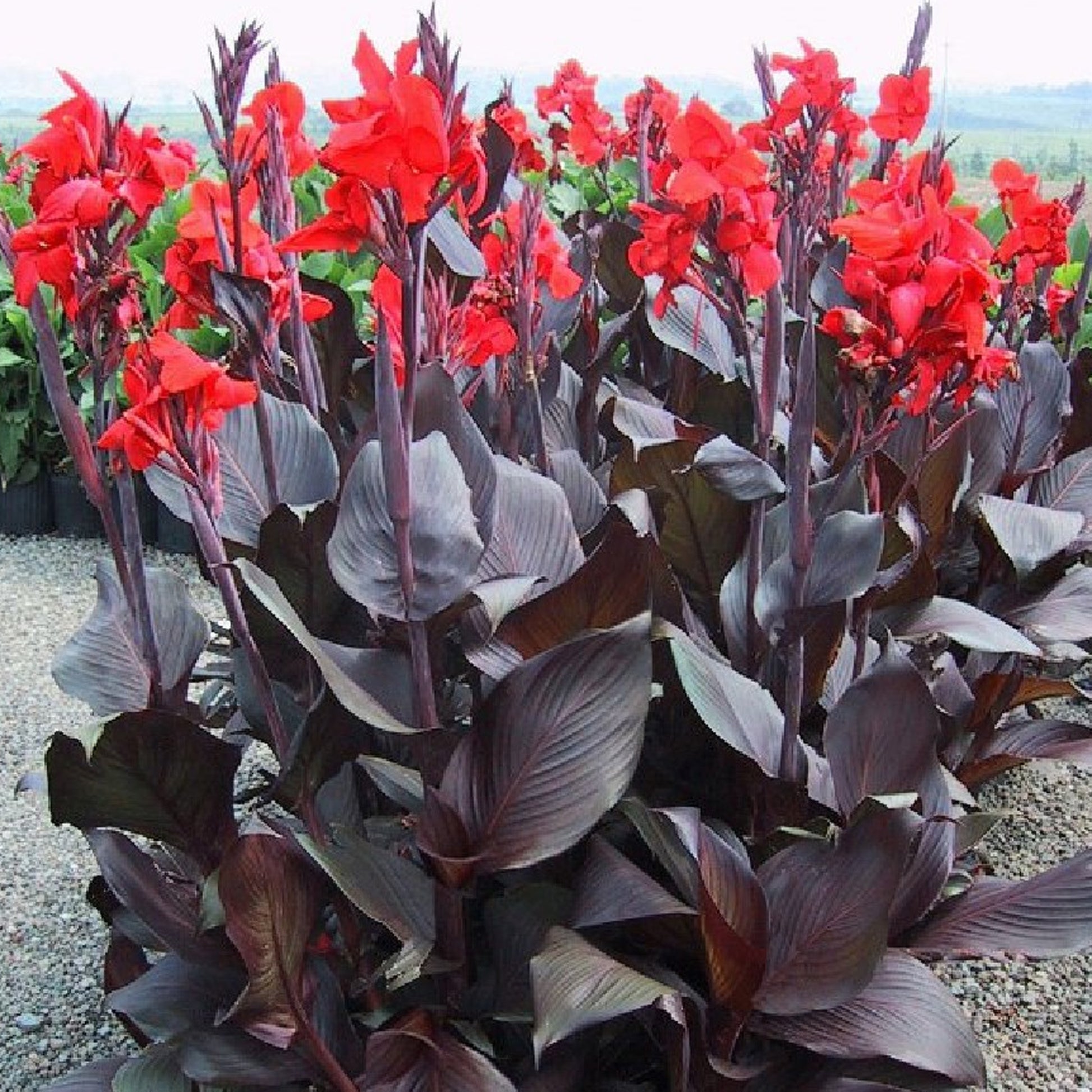 Canna Australia is a magnificent addition to any garden, showcasing bold red flowers against dark, glossy bronze-purple foliage. These tall, elegant plants create a striking visual contrast, perfect for tropical-style garden displays. Blooming profusely throughout the summer months, they are a stunning choice for adding height and colour to borders, beds, or large patio containers.