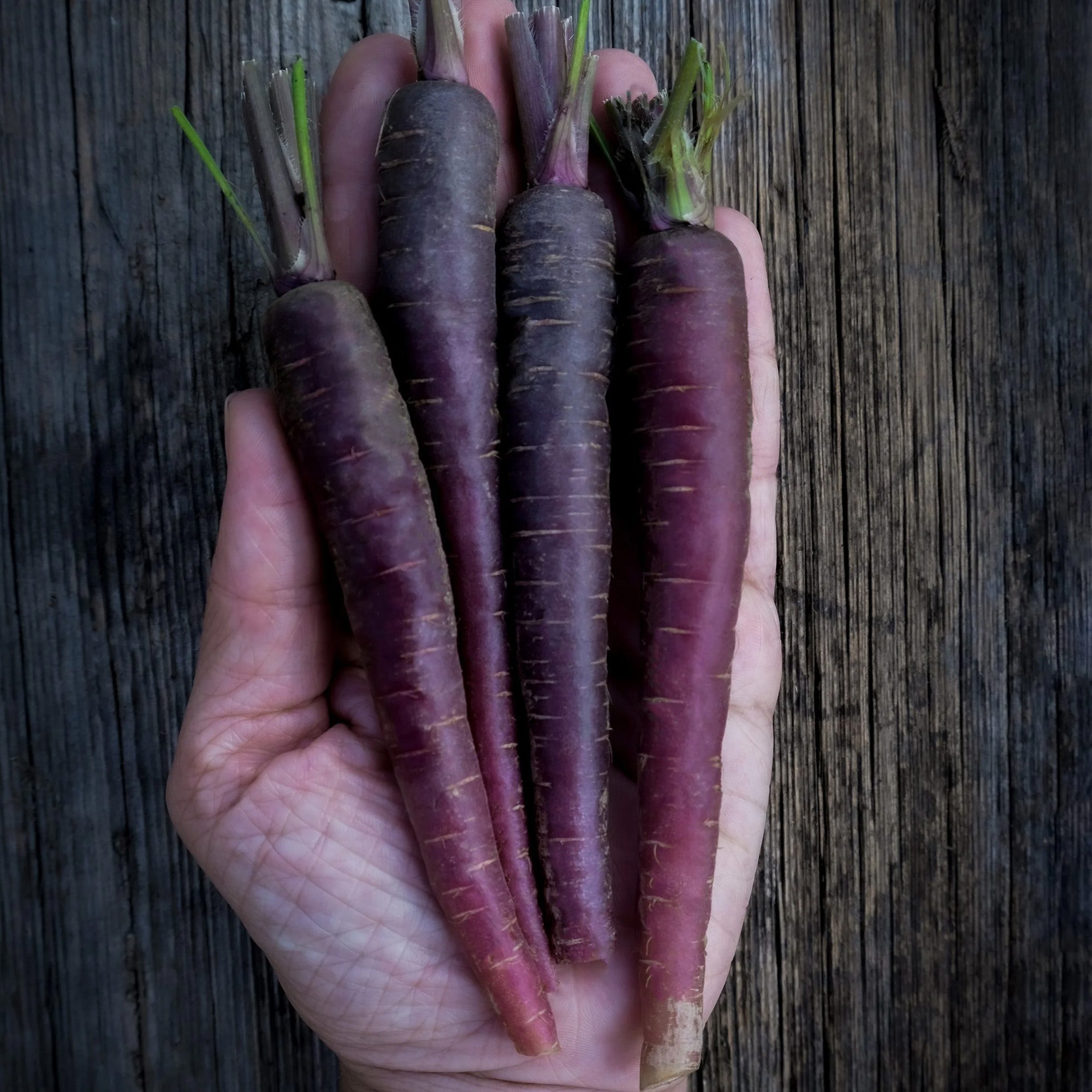 These Carrot 'Purple Sun' seeds produce stunning deep purple roots with a vibrant orange core and a sweet, earthy flavour. Rich in anthocyanins and antioxidants, this eye-catching variety is as nutritious as it is beautiful, making it perfect for gourmet dishes, colourful salads, and healthy snacks. The roots are smooth, uniform, and ideal for slicing, roasting, or juicing.