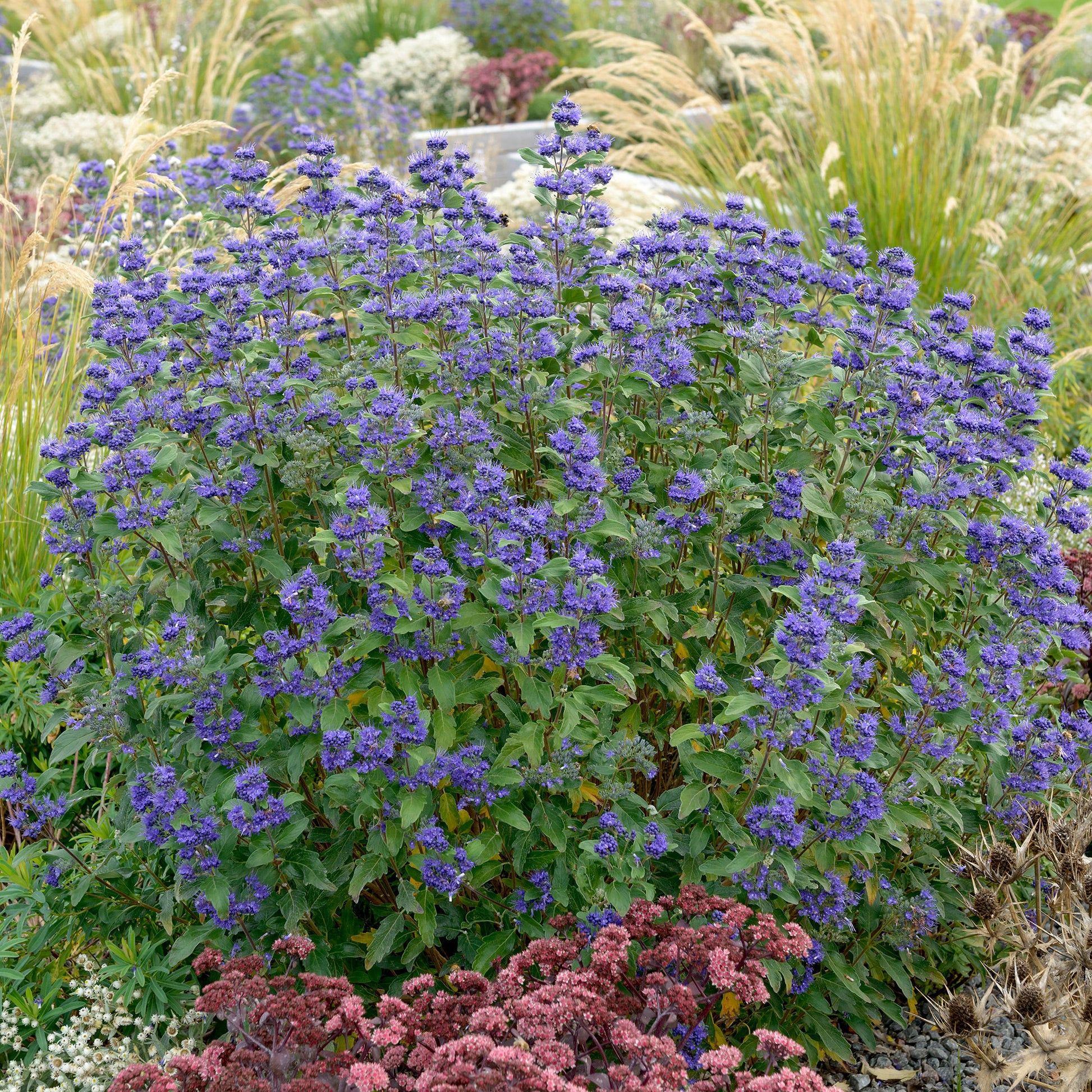 Beyond its ornamental appeal, 'Grand Bleu' serves as a valuable resource for pollinators, with its nectar-rich flowers attracting bees and butterflies during the late season. To maintain its compact form and promote prolific blooming, it's advisable to prune the shrub back hard each spring. This low-maintenance plant offers extended interest in the garden, enhancing both aesthetics and biodiversity.
