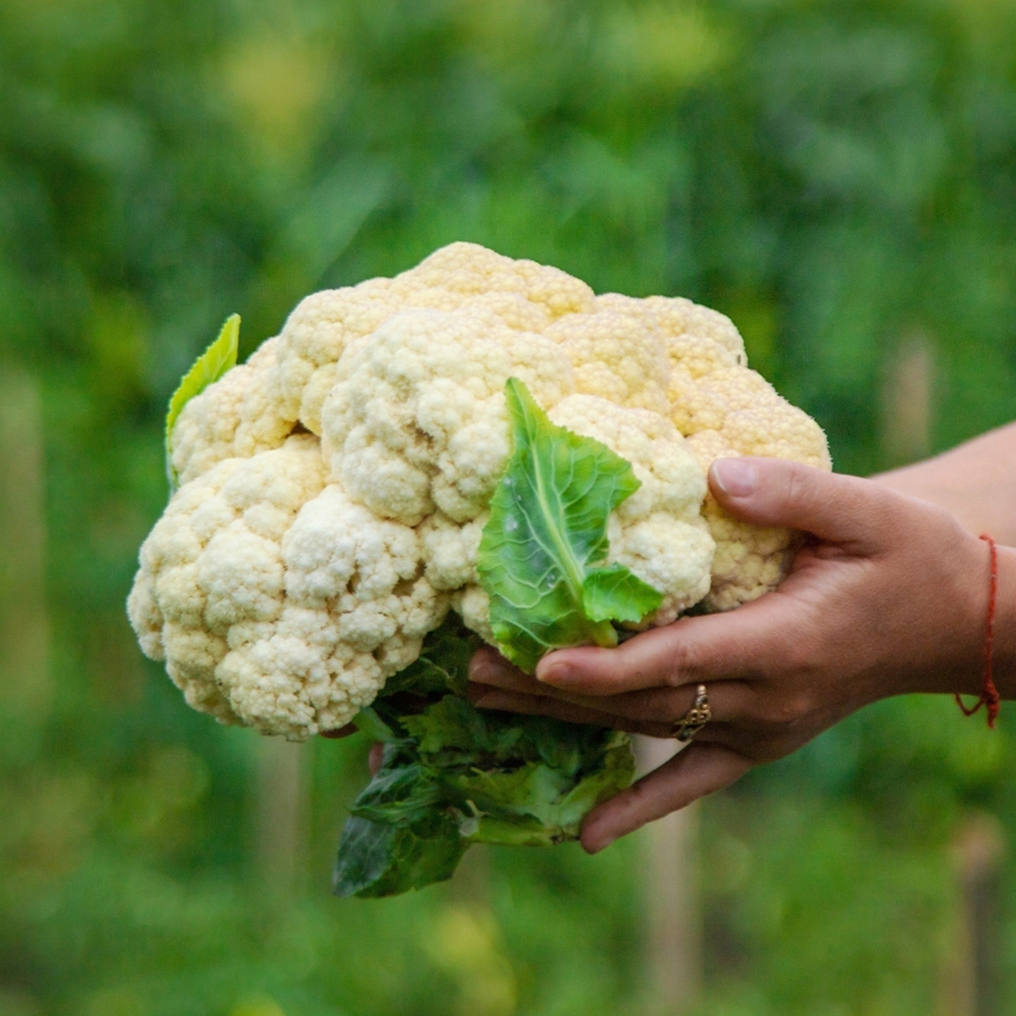 Cauliflower 'Autumn Giant' is a robust, late-season variety that produces large, well-protected white heads with excellent flavour and texture. Its vigorous growth and cold tolerance make it ideal for extending your harvest into the cooler months. The plants develop strong outer leaves that shield the curds from frost and discolouration, helping maintain quality as temperatures drop.