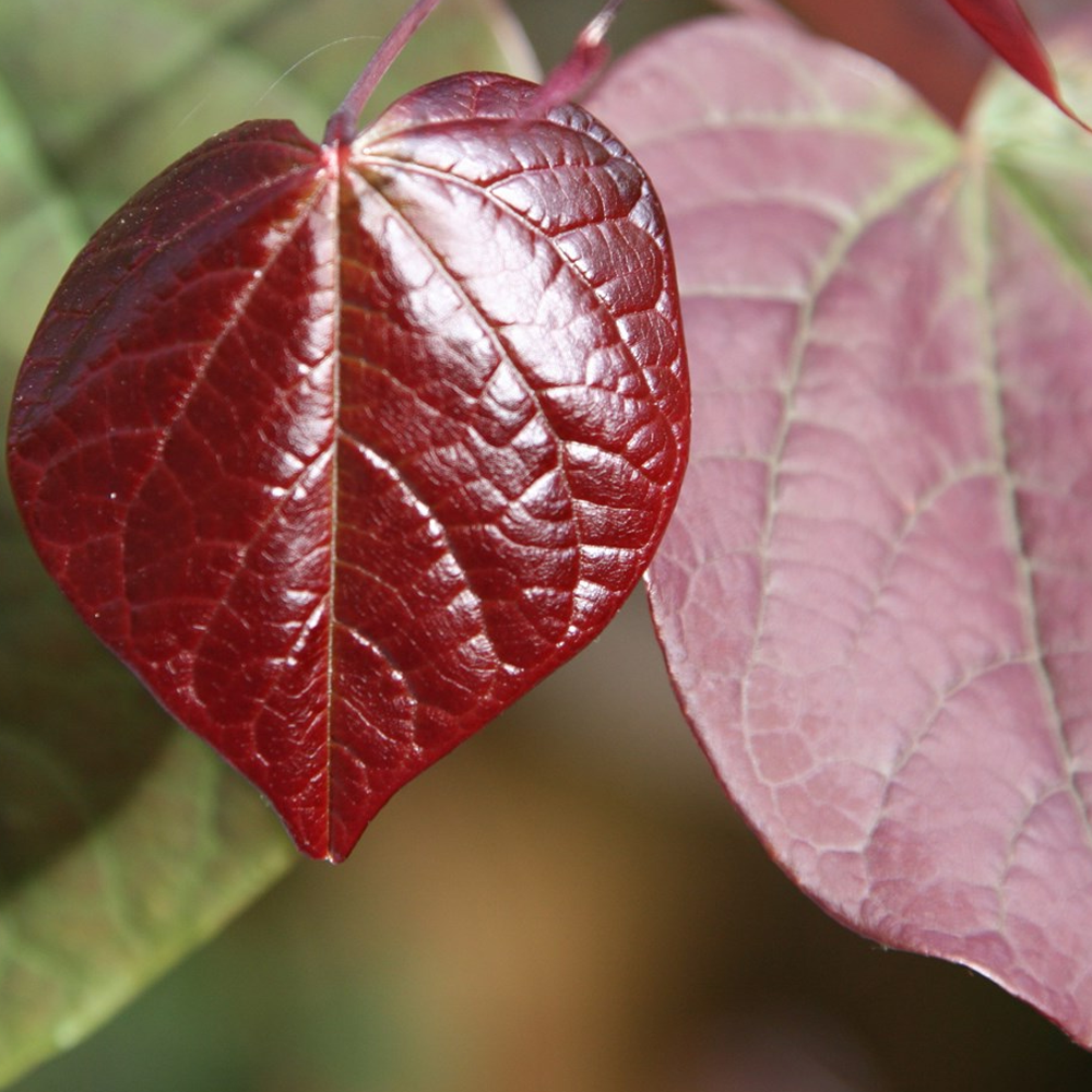 In the Autumn the leaves of the Cercis canadensis take on a luminescent red tinge as they begin to shut down for the Winter season. It is best planted in gardens that face South with a high sun contact as this ensures that the leaves stay as vibrant colouring as long as possible.