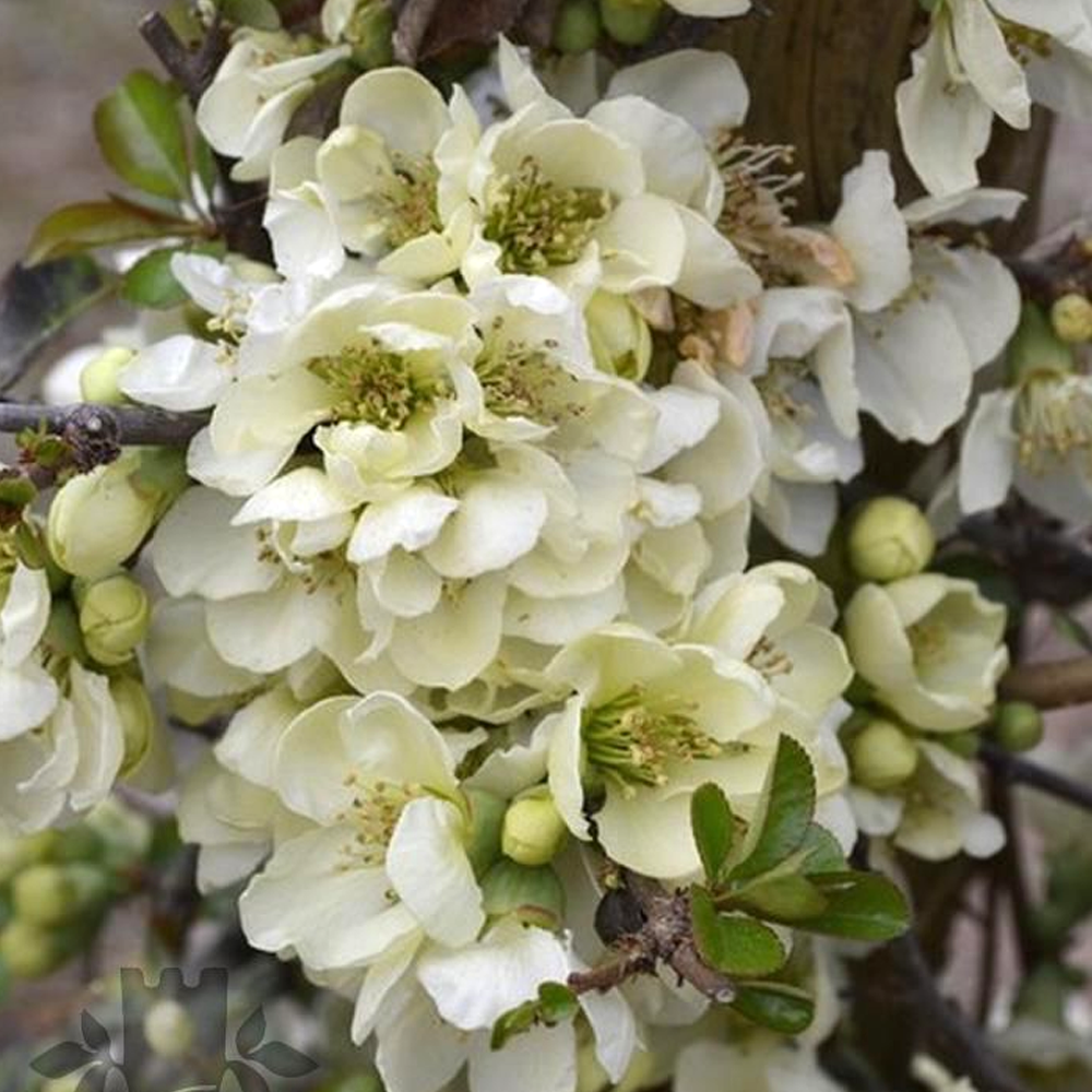 Chaenomeles X Superba ‘Lemon and Lime’ or simply call it the Japanese Quince, is a rounded deciduous shrub with spreading branches that are adorned with glossy dark green leaves. In spring, the shrub blooms pale yellow-green flowers creating a lush appearance in the garden.