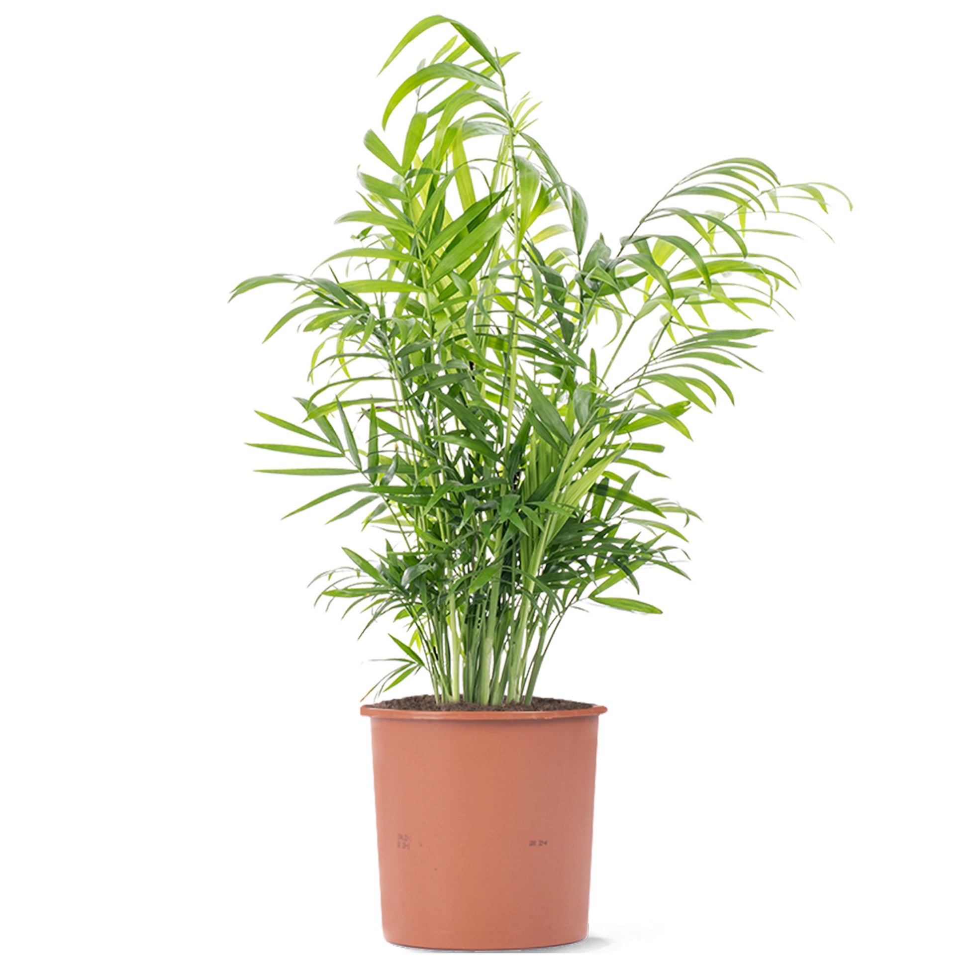 The Palmour Palm, also known as Neanthe Bella Palm, is a popular houseplant. This indoor palm comes in a variety of sizes - the tallest we have reaches a manageable 70-80cm! Its arching, bright green stems bear an abundance of vibrant foliage that can form up to 40 unique leaflets. Small, bright yellow flowering is also possible, requiring the plant is mature and is given sufficient light levels in your home or office.