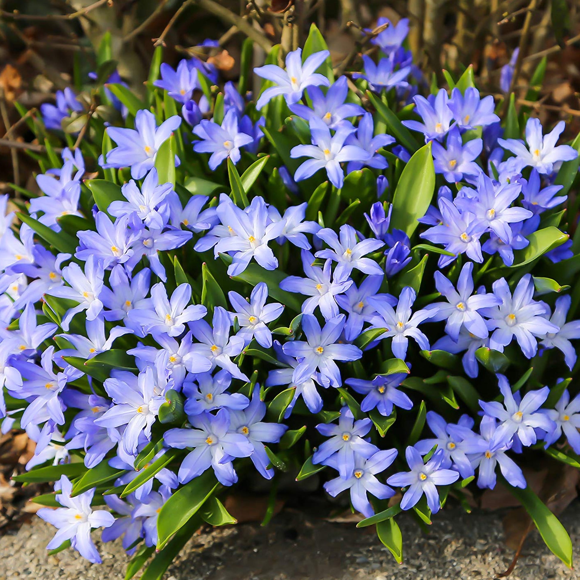 Glory of the Snow bulbs are ideal for planting in borders, rock gardens, containers or beneath deciduous trees. Grow Chionodoxa in full sun or partial shade, in any well drained soil. Add plenty of well rotted manure or garden compost to the soil prior to planting to improve less than ideal soils. Plant bulbs at a depth of 8cm (3"). Create natural looking drifts of Chionodoxa flowers by gently casting the bulbs across the lawn or planting area and planting them where they land.
