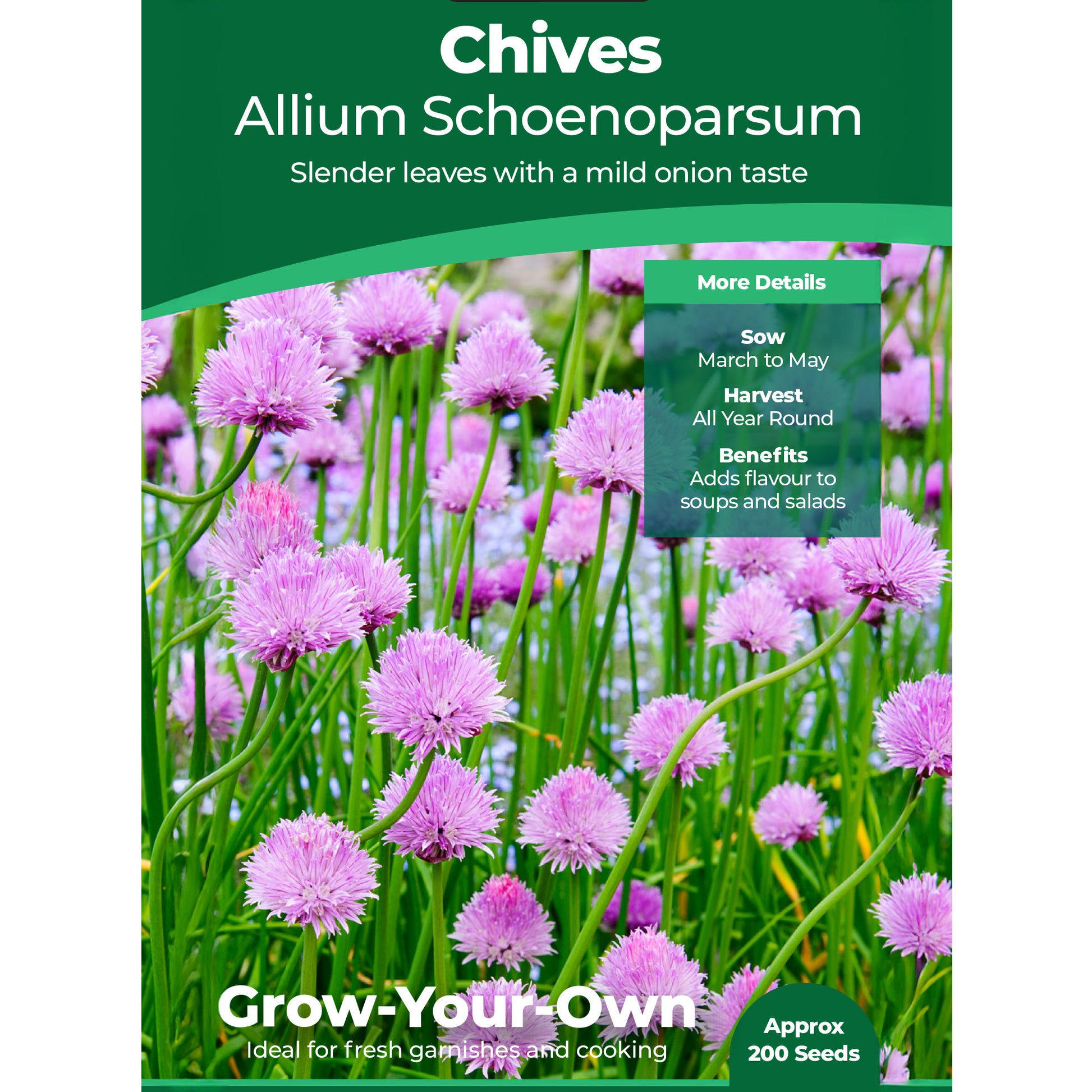 Grow Chives in pots on a light windowsill for ease of fresh harvesting as you cook. Alternatively, plant outdoors for a larger crop. Chives are somewhat unfussy about their growing conditions, doing well in full sun or partial shade in most moist but well-draining soil types.