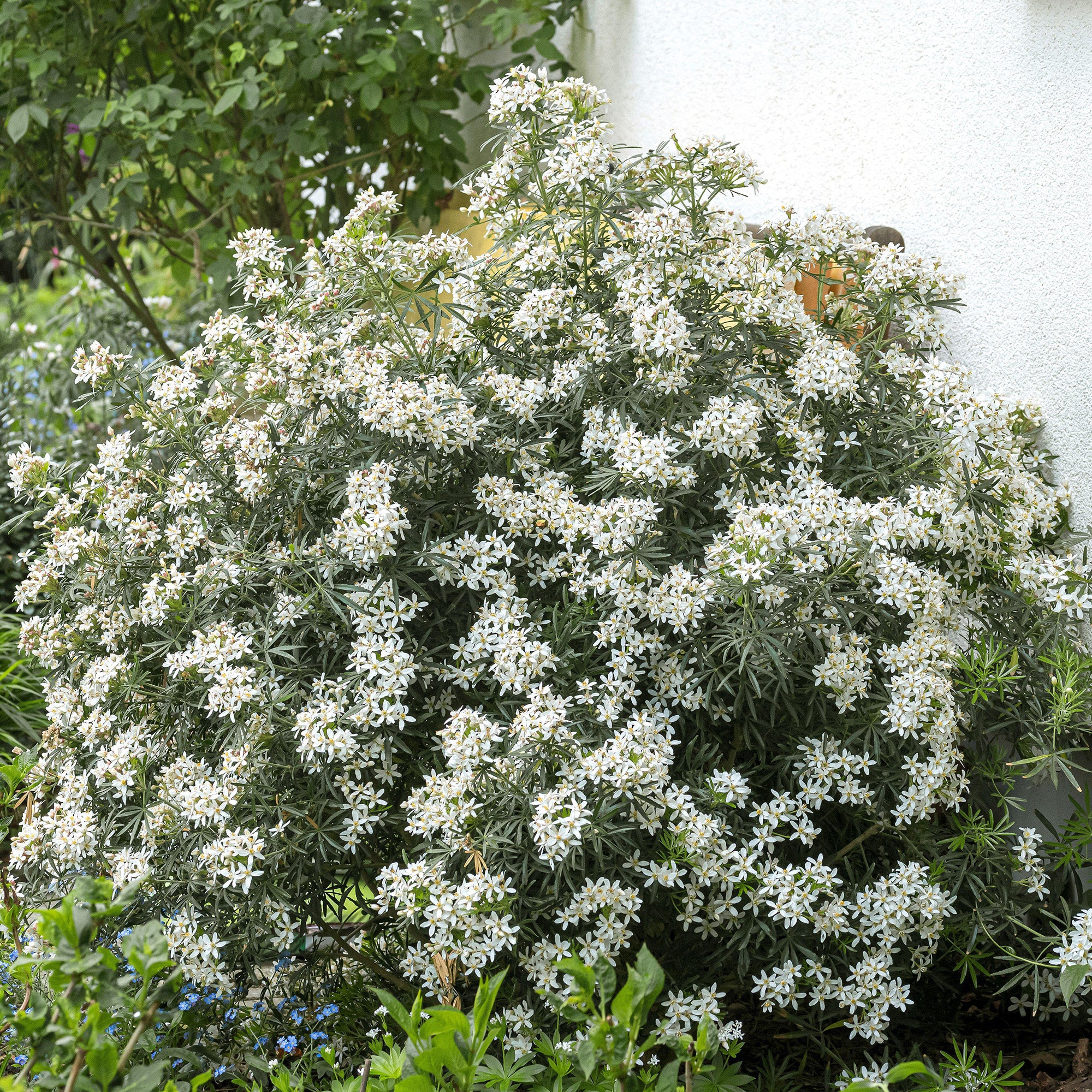 Plant choisyas in full sun or partial shade in well-draining soil. Enrich the soil with well-rotted organic matter and dig a hole around twice as wide as the root ball. Position the plant so the top of the root ball is at soil level then backfill with soil and compost, gently firm down, and water in well.