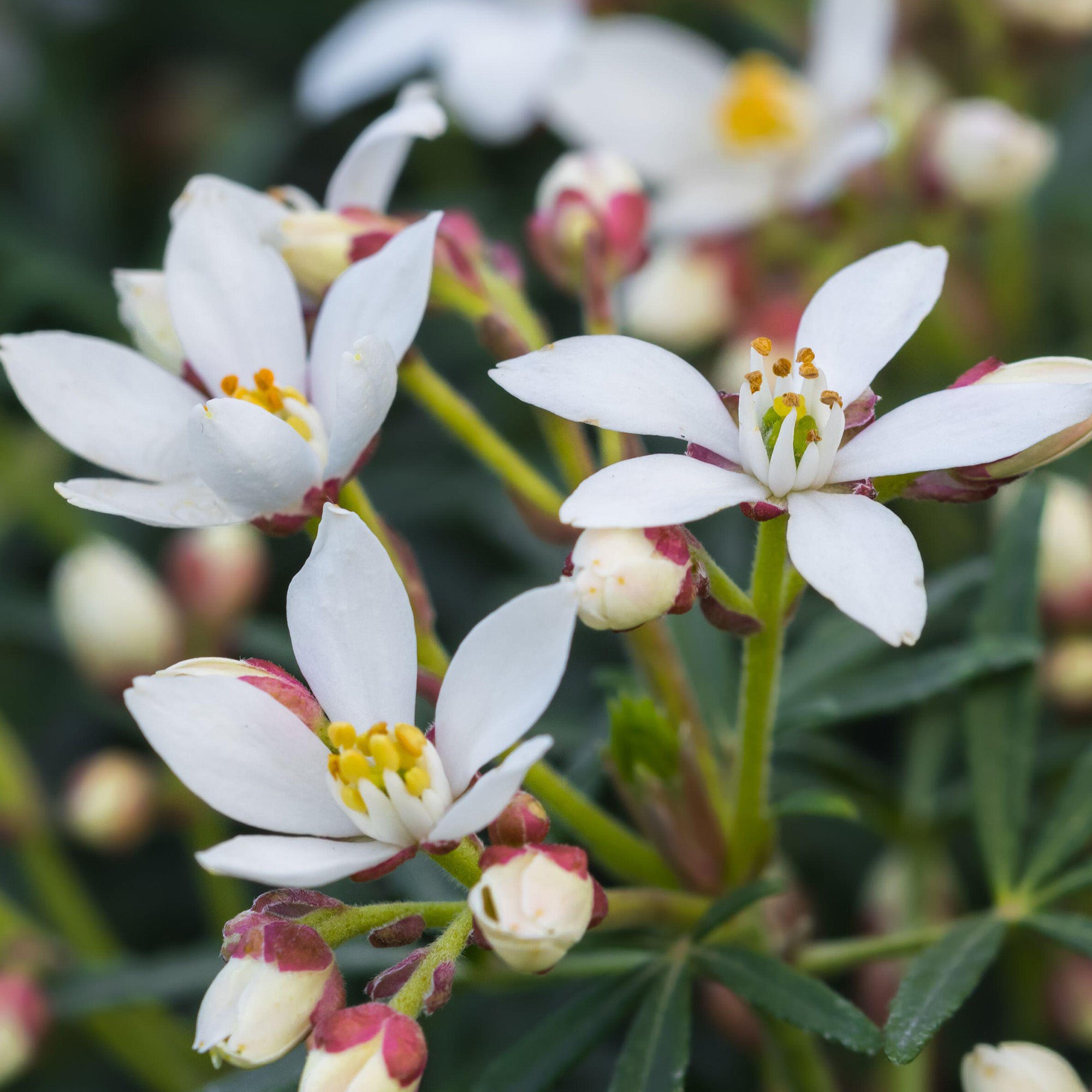 The “White Dazzler” is a lovely evergreen plant that is enjoyed for its wonderful scents and beautiful blooms. It is drought-resistant and can tolerate various pH levels and soil types as long as they are well-drained. They prefer full-sun, but like to be sheltered.