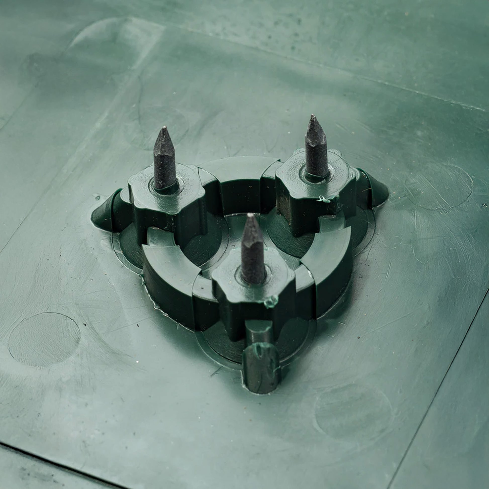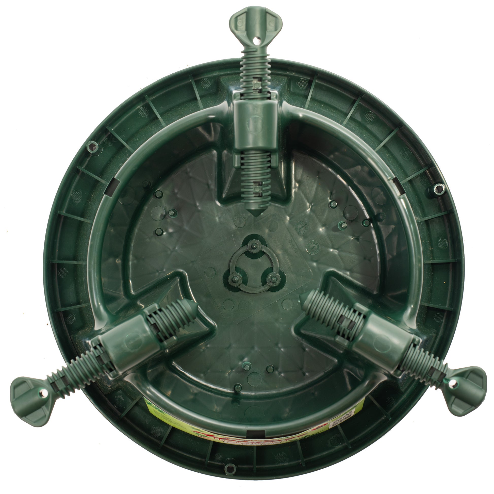 Three strong galvanized pins in the center of the stand's base help to lock and centralize the tree before final adjustment.