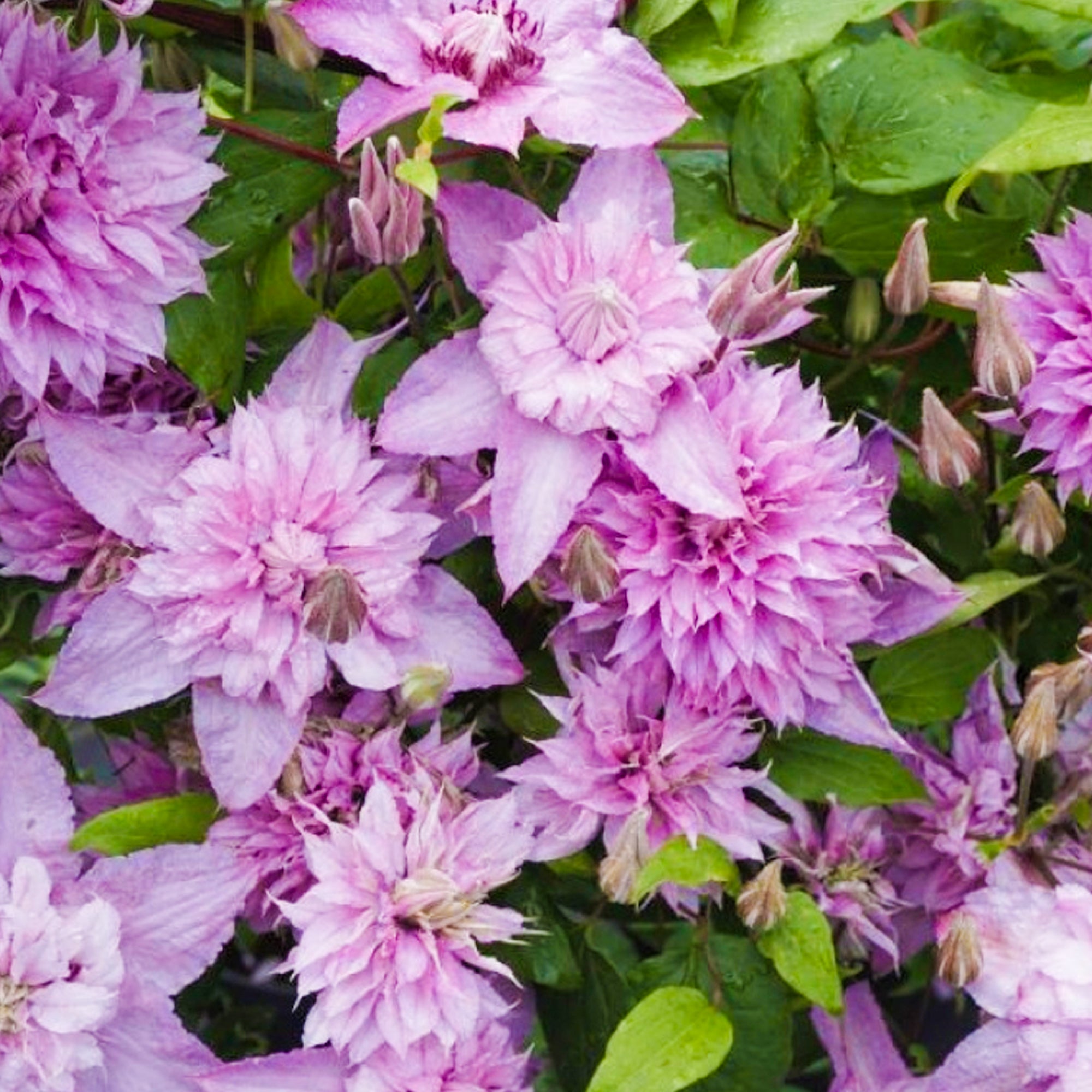 Clematis ‘Multi Pink’ is a show-stopping climber with emerald leaves and stunning, ruffled, elegant pink flowers, which will bloom from midsummer all the way until early autumn. The plant is deciduous and will lose its foliage over the winter months, ready for fresh, new leaves in spring before a myriad of new blooms in summer, growing bigger and better each year.