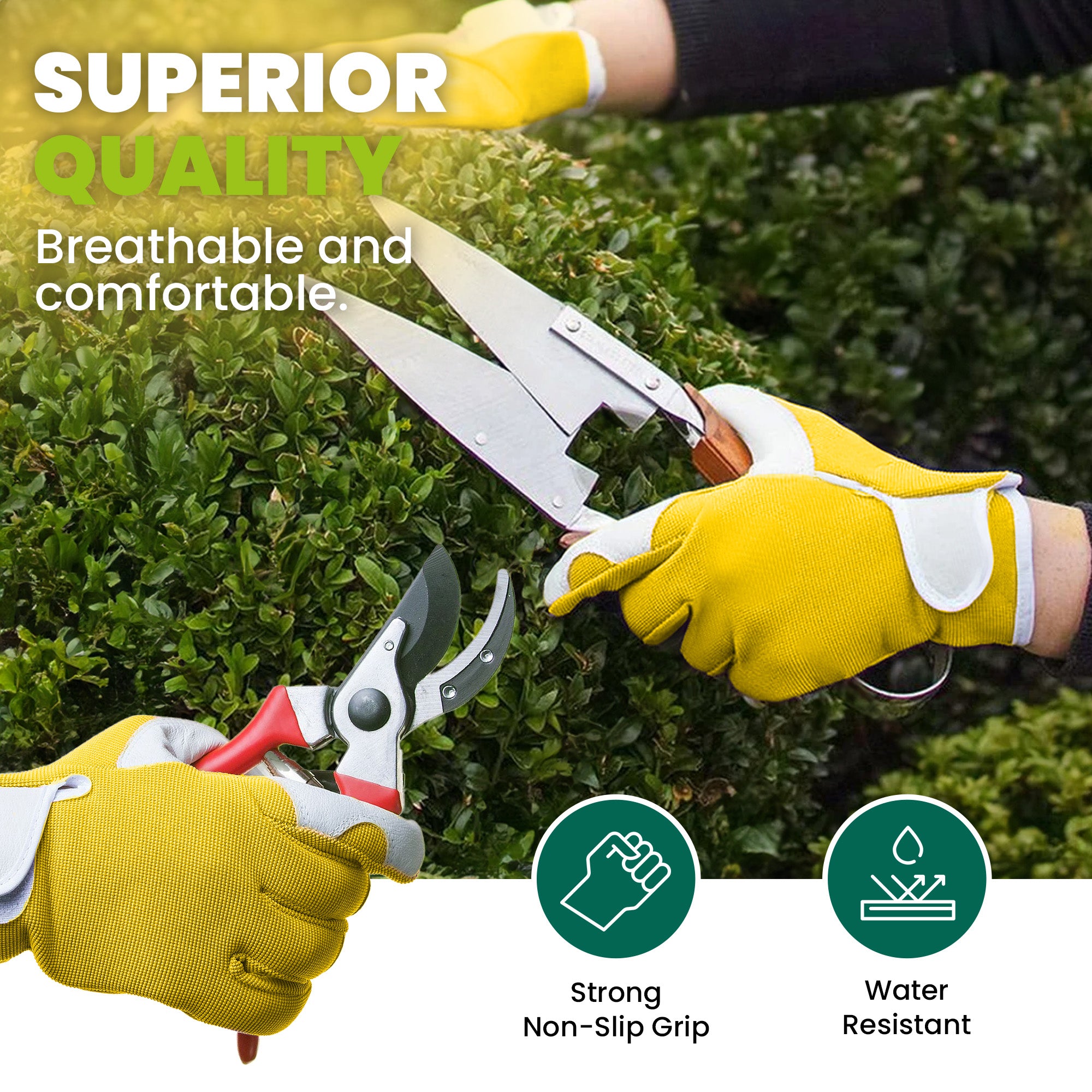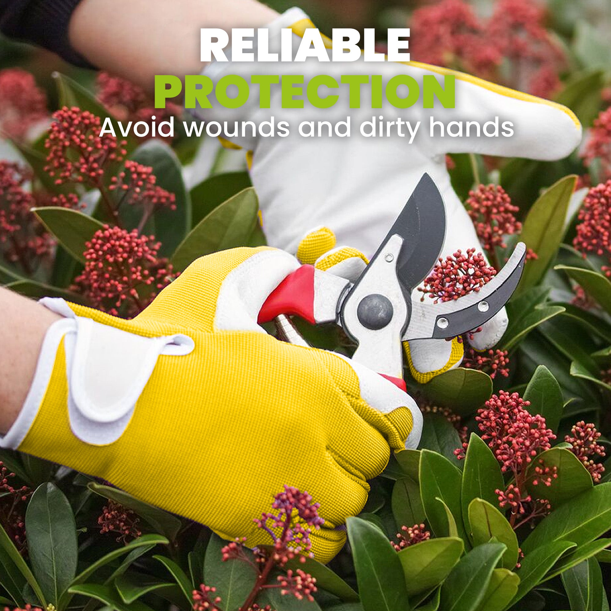Gardeners Dream ® Gardening gloves have been designed to incorporate fashion, comfort and quality. The stylish design fits fantastically snug to your hands, allowing for extra finger sensitivty. Premium leather for durability, resiliance, grip and abrasion resistance. Nylon back for breathability and comfort.