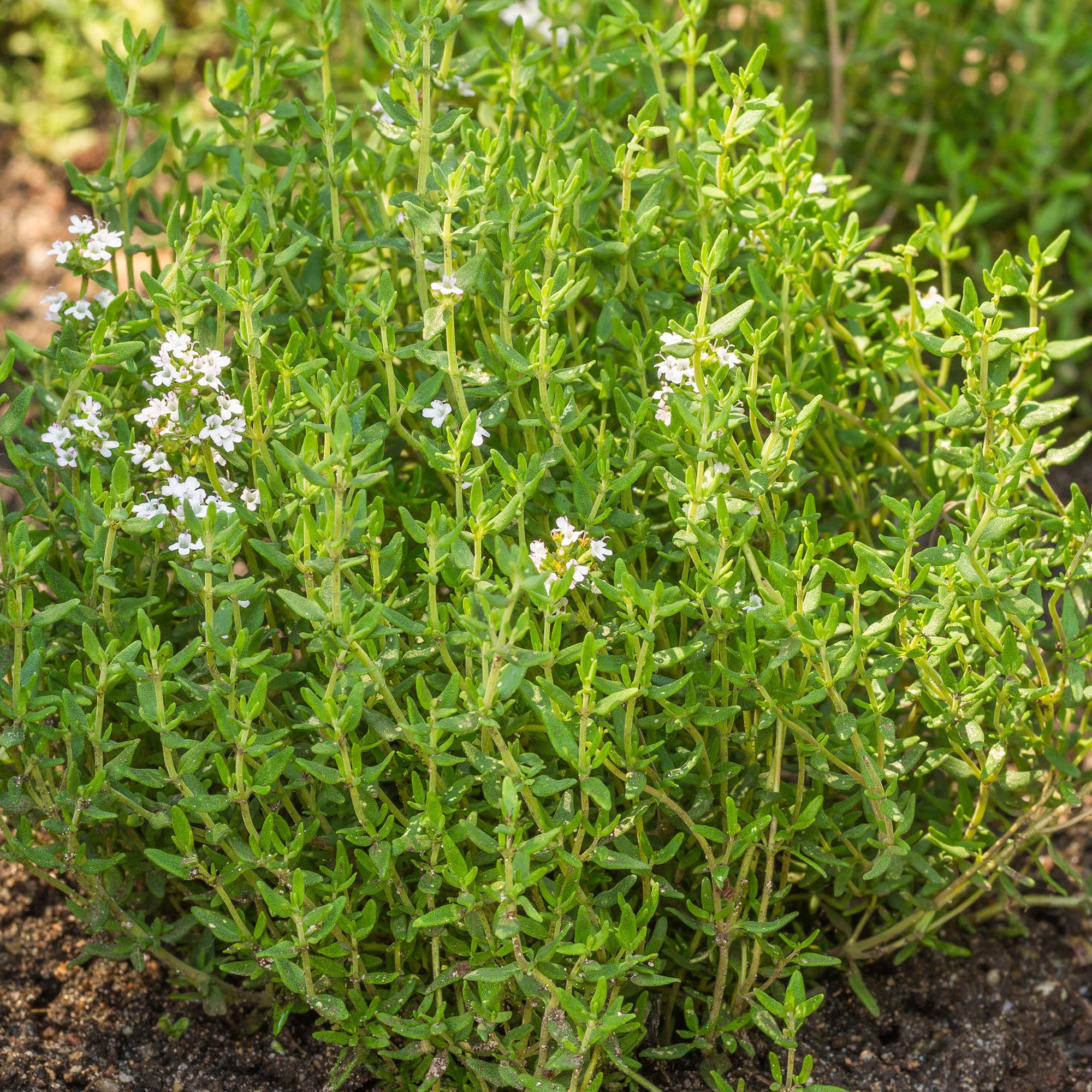 Choose a warm, sheltered spot in full sun and plant thyme in well-draining soil, leaving 20-30cm between plants. In areas with heavy or clay soils, plant thyme in containers with pebbles in the bottom for drainage.