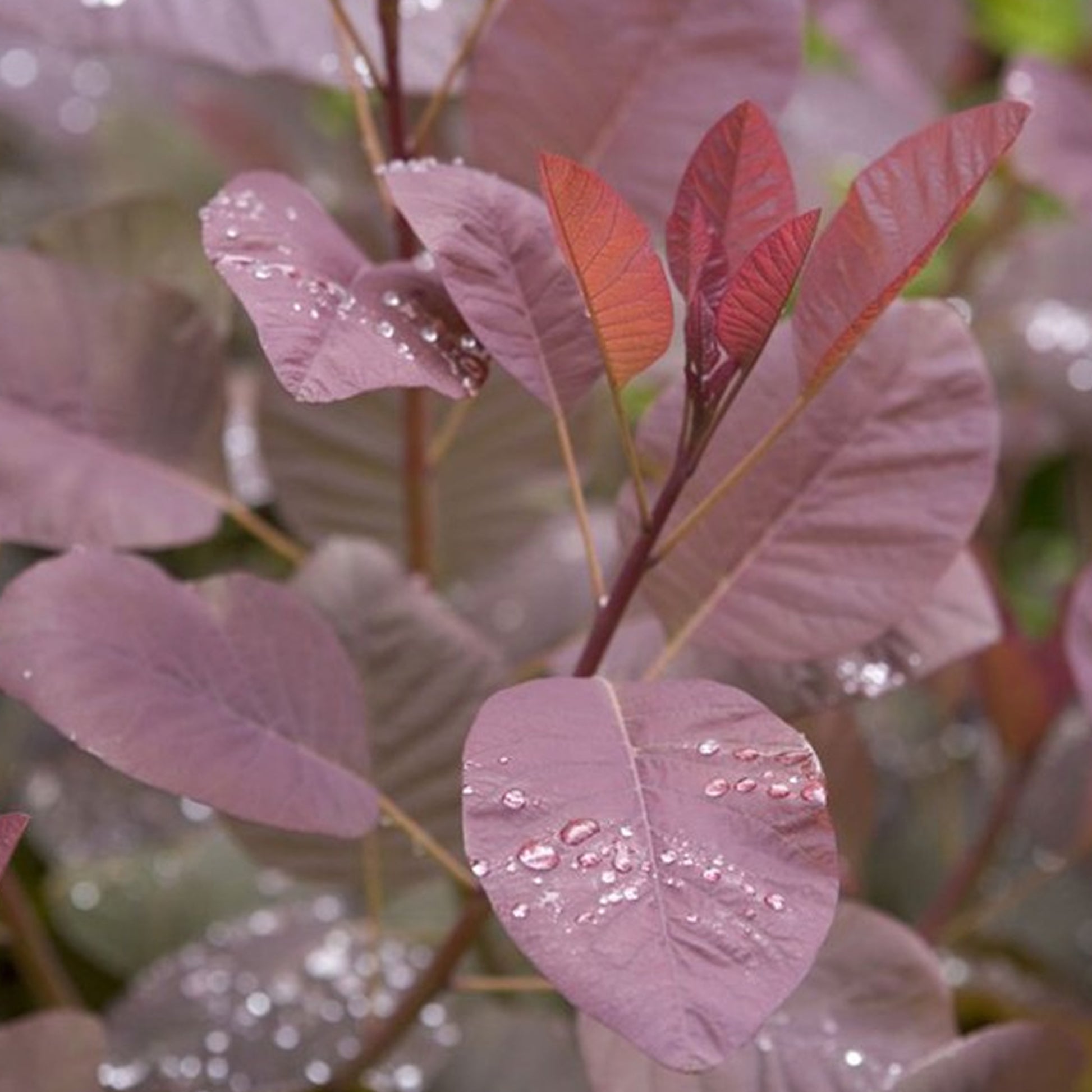 Cotinus Grace is a deciduous shrub that brings purple foliage throughout the Spring and Summer months, before pink fruit is produced from the plant in Autumn. Also in Autumn, the foliage will form more of a red hue to it, making sure there is colour present for a majority of the year. Cotinus should be planted in moist, well-drained soil and kept in full sun at the best of times. Watering these shrubs should see you water it regularly and, more importantly, well so that it can better tolerate periods of drought once it has established itself in the garden.